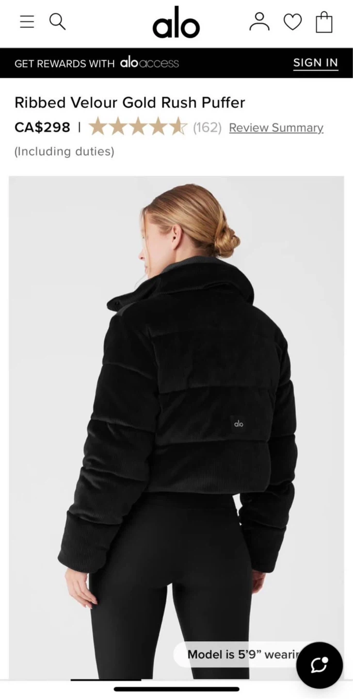 Alo Ribbed Velour Gold Rush Puffer Jacket - Size M
