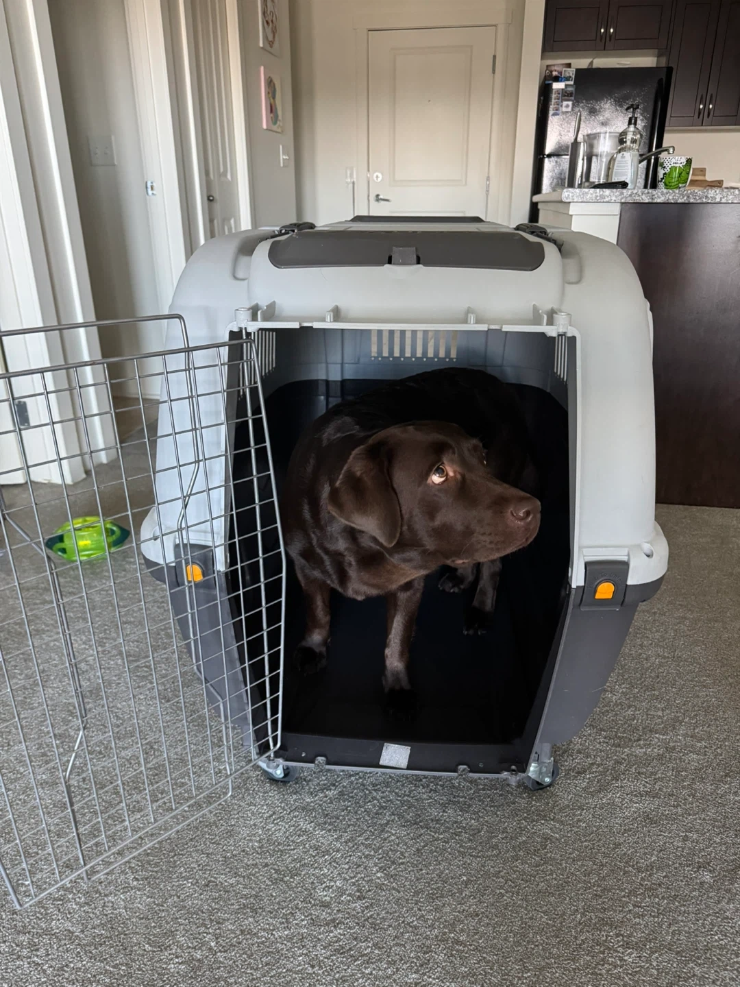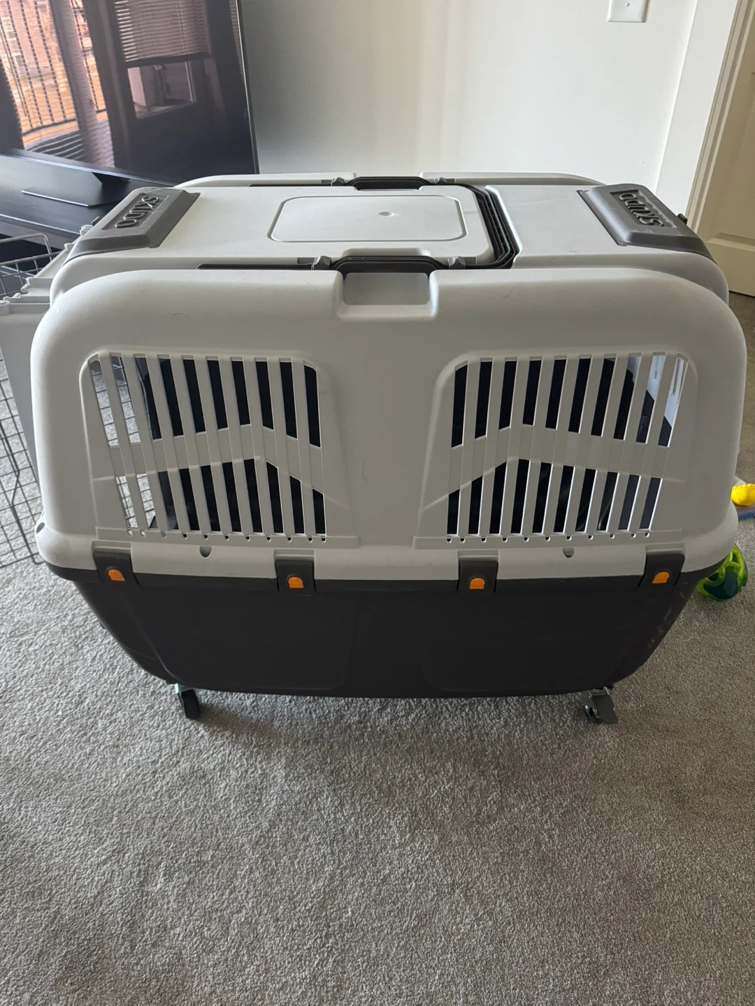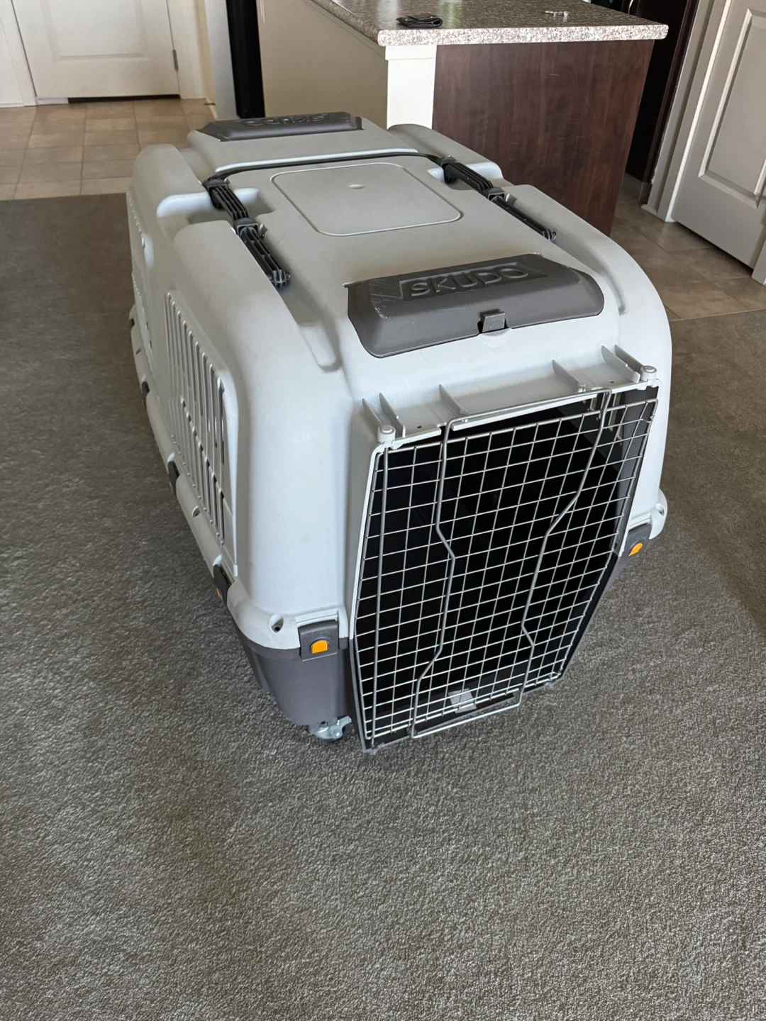 10Selling a Skudo 7 pet carrier. Price without wheels 90, with wheels 140. Wheels can be sold separately. The size of the crate is 107x76x73.