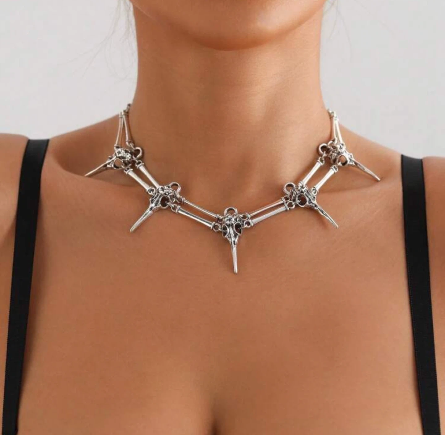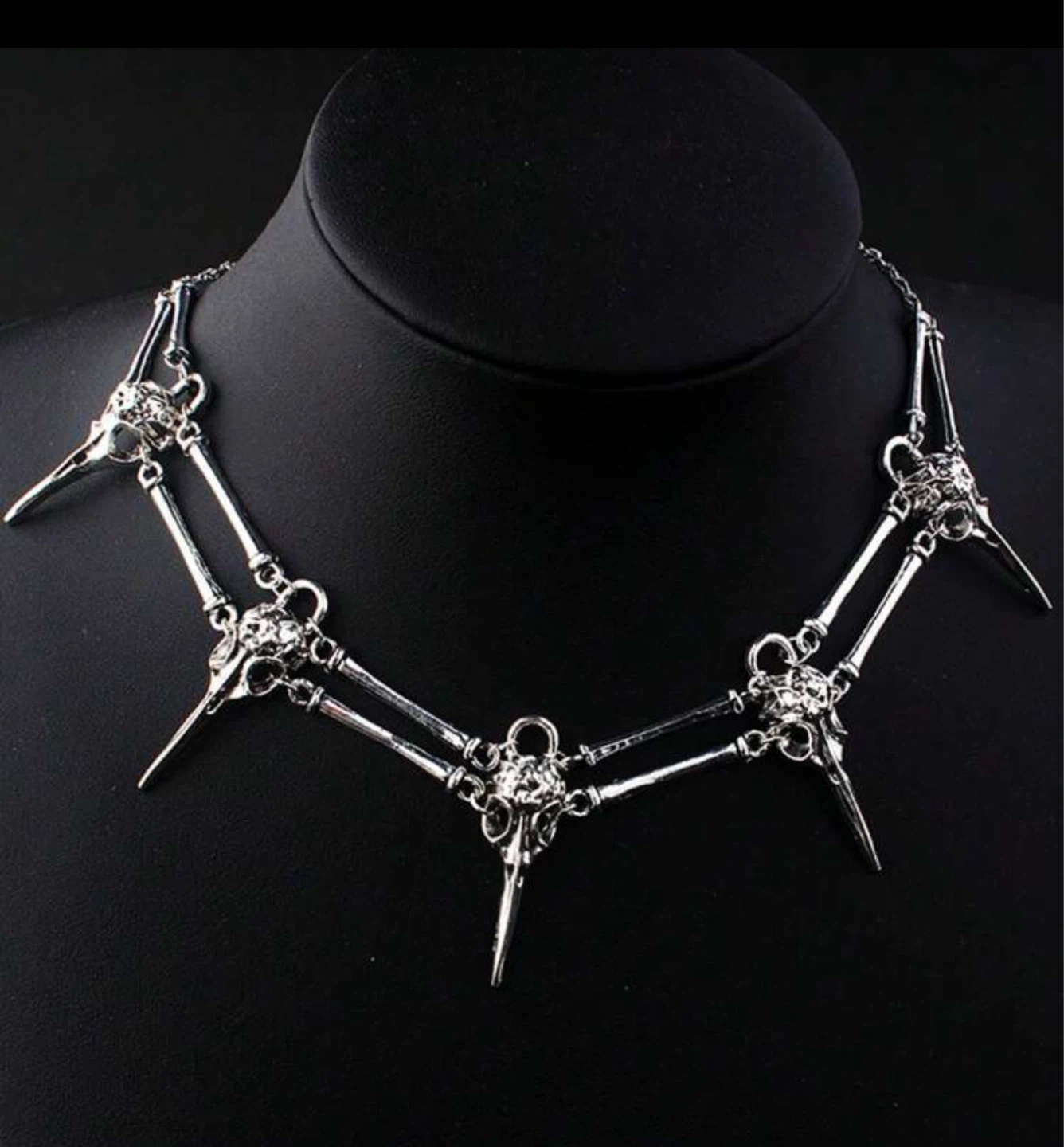 unique skull bird head silver necklace! This eye-catching piece is perfect for adding a touch of edgy style to any outfit. The intricate design and silver finish make it a standout accessory. It's in great condition and ready to find a new home