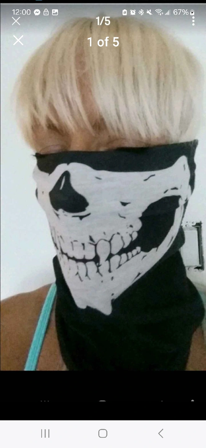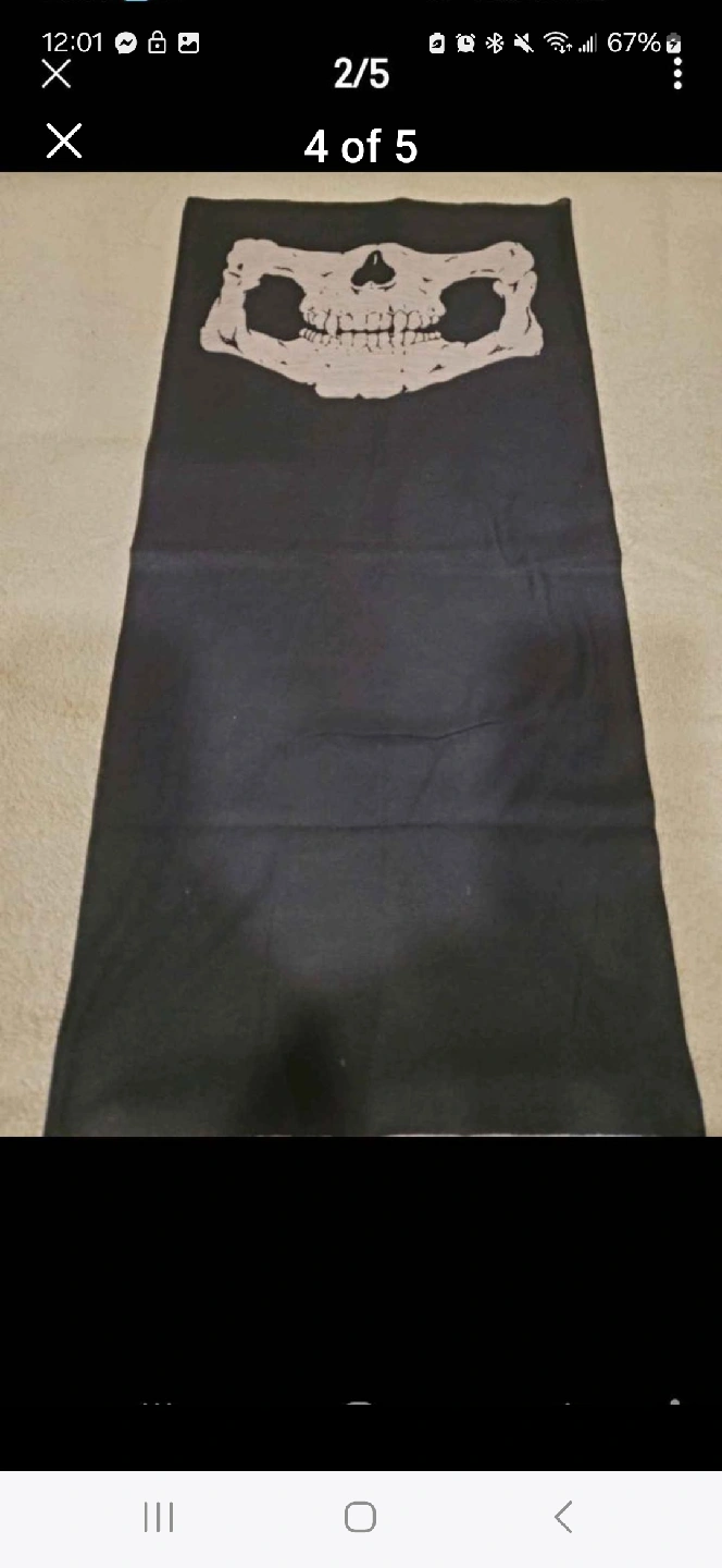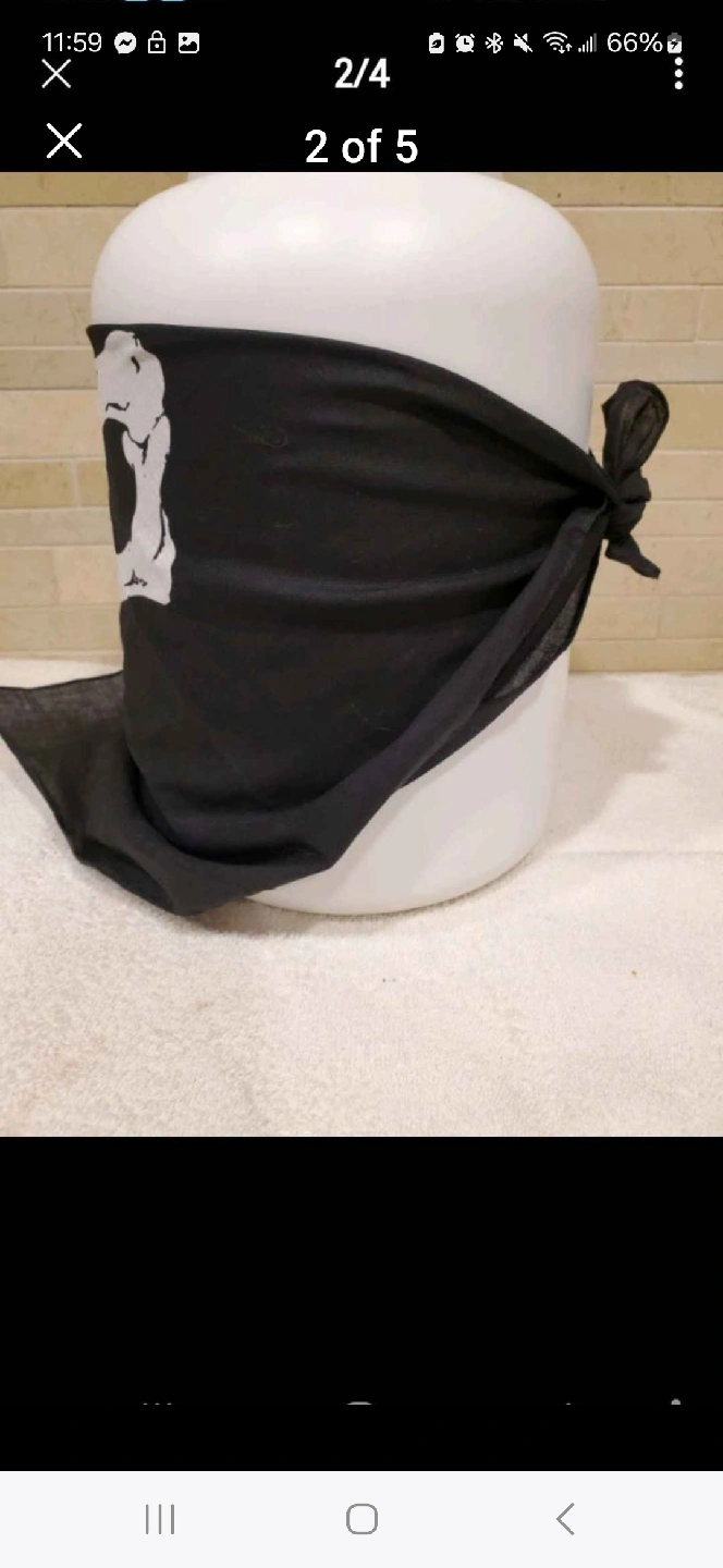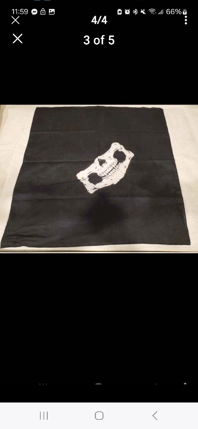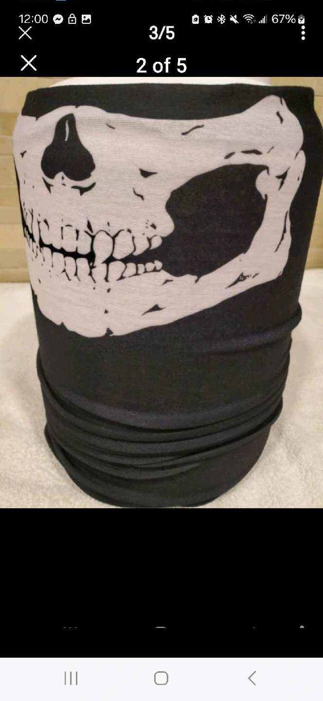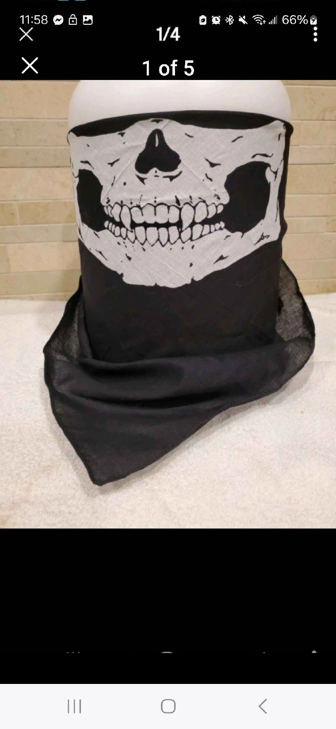 BRAND NEW Skull face bandanas black with a white skull print! Two kinds available - one is a soft stretchy TUBE BANDANA you pull over your head onto your face - second type is 100% COTTON SQUARE you fold it into a triangle and tie around your face Perfect for adding a bit of edge to your look $5. each