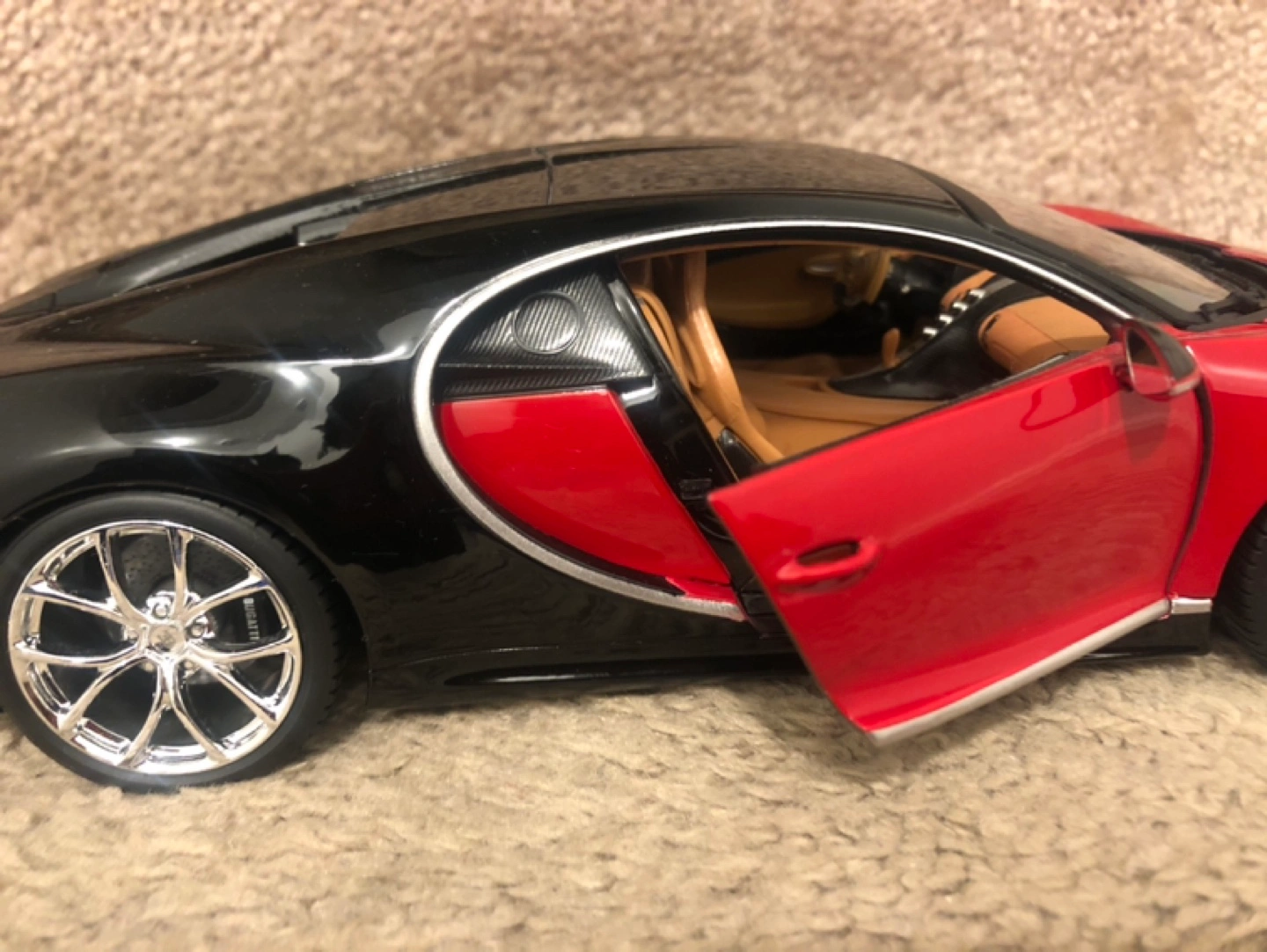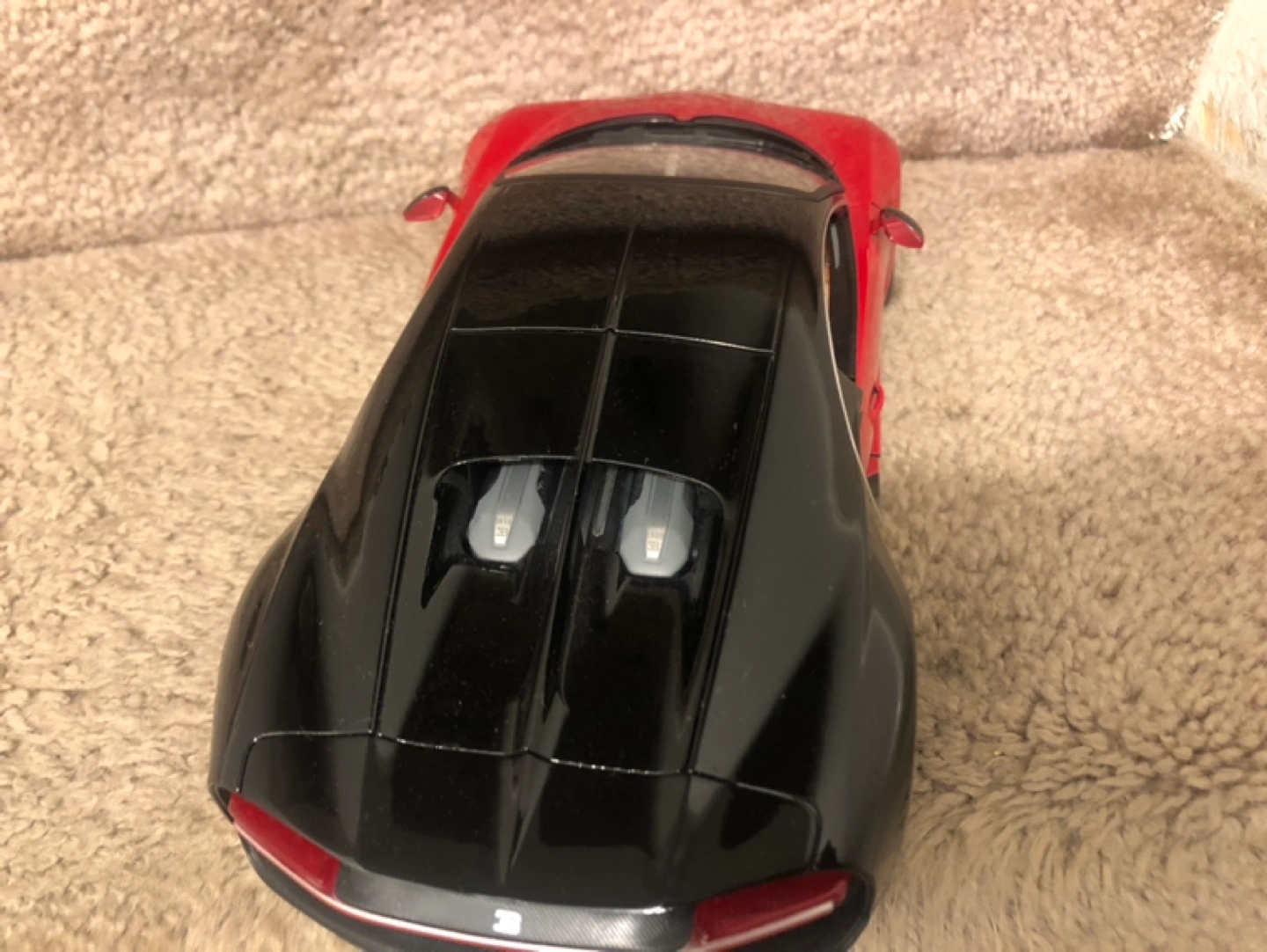Selling a Bugatti Chiron model car in black and red. It's in great shape and would be a cool addition to any collection!
