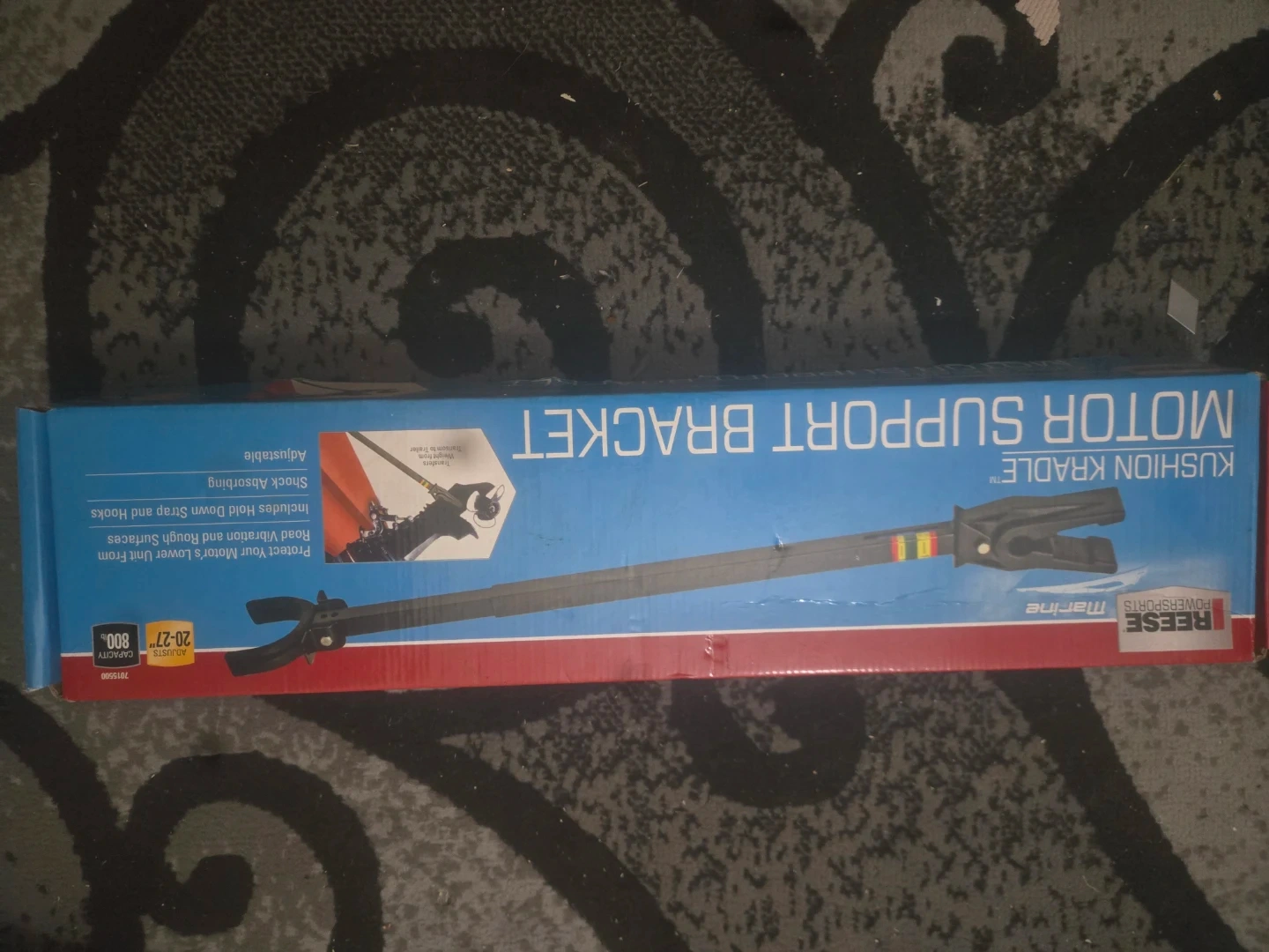 Protect your motor's lower unit from road vibration and rough surfaces. This adjustable bracket is shock absorbing and includes a hold-down strap and hooks. It adjusts from 20-27 inches and has an 800 lb capacity.