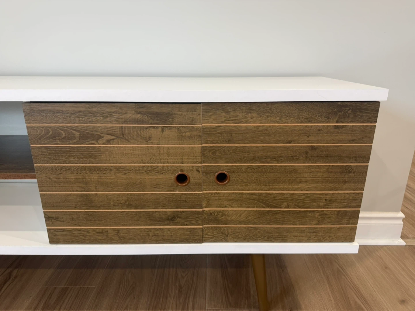 White Media Console with Wood Accents