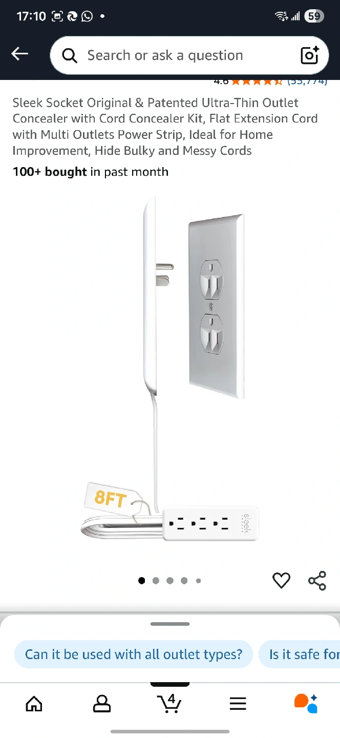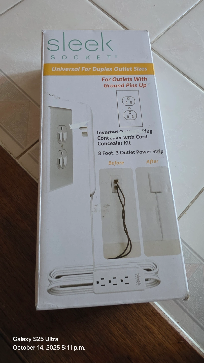 Selling a Sleek Socket outlet concealer kit. This is the inverted outlet version with an 8-foot, 3-outlet power strip. It's designed to hide bulky and messy cords, making it ideal for home improvement and creating a cleaner look! Fits all duplex outlet sizes
