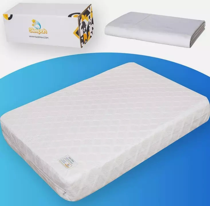 New crib mattress and waterproof mattress cover. Zippered mattress cover included. Perfect for nurseries.