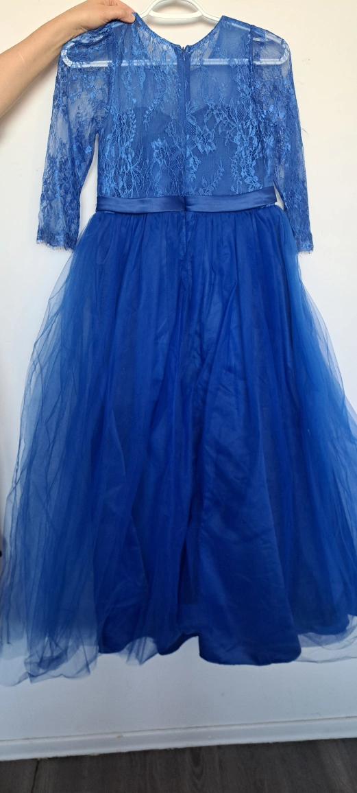 Flower Girl Wedding Party Maxi Dress Long Sleeve Lace Ball Gown with Rhinestone. Measurements second pictures. Bought and used once in 2019. Just needs to be ironed. Still in excellent condition and clean. tag is 170, which is for ages 11-12. Address: 18 panorama court. In etobicoke.