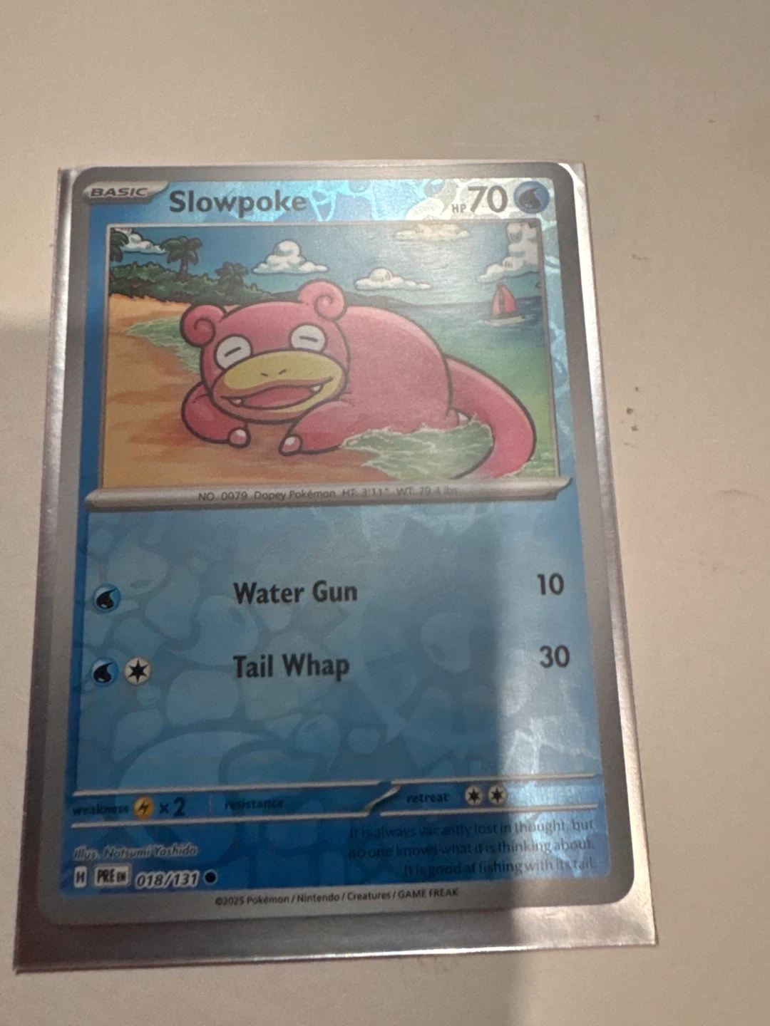 Selling a Slowpoke Pokemon card. The card features the Water Gun and Tail Whap attacks. It's from the Pokemon/Nintendo/Creatures/GAME FREAK series, manufactured in 2025. A great addition to any collection!