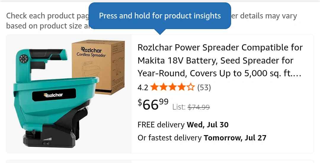 Selling a Rozlchar Cordless Spreader, It's compatible with Makita 18V batteries and can cover up to 5,000 sq ft. Comes with the original box and instruction manual.
