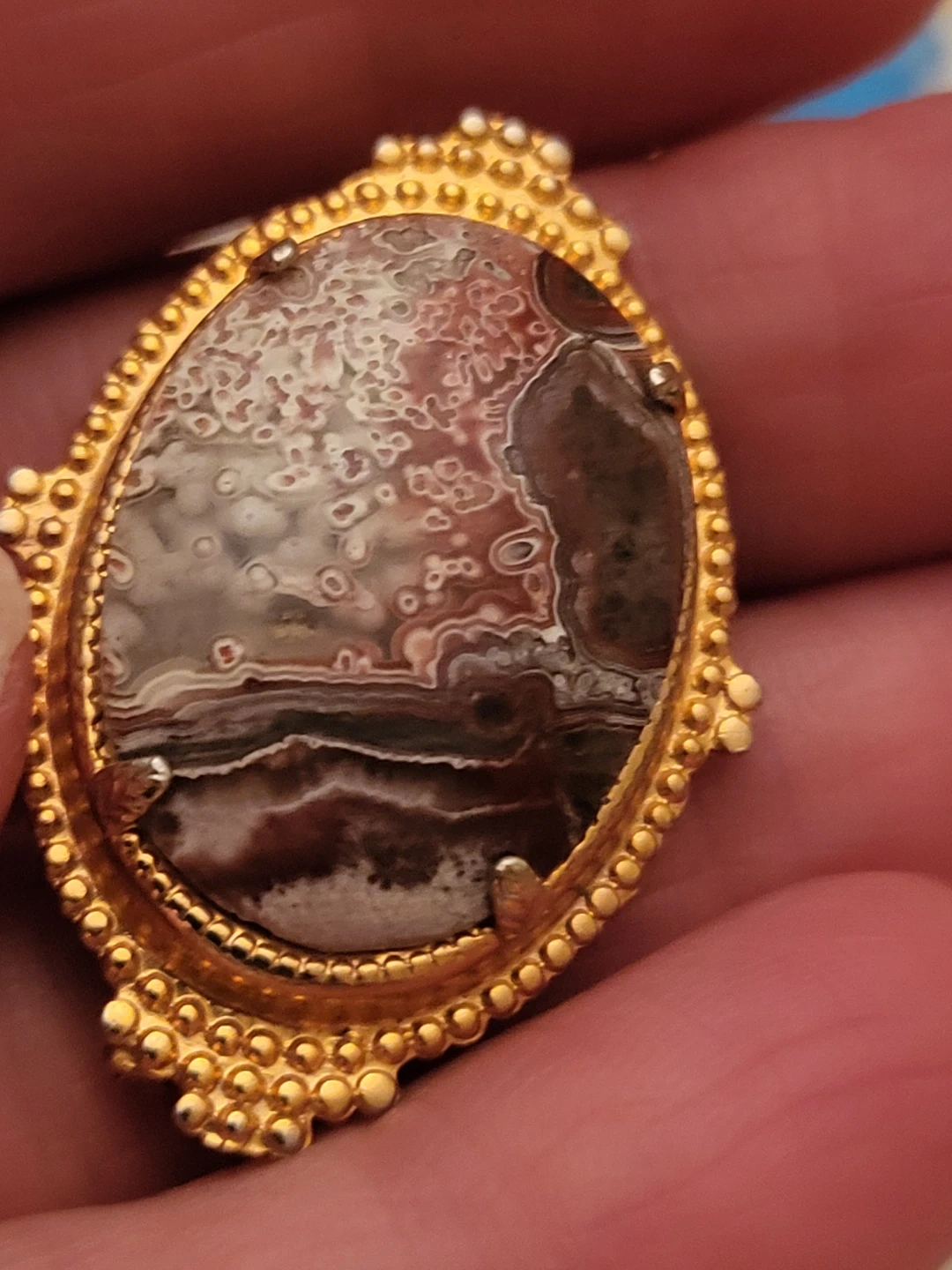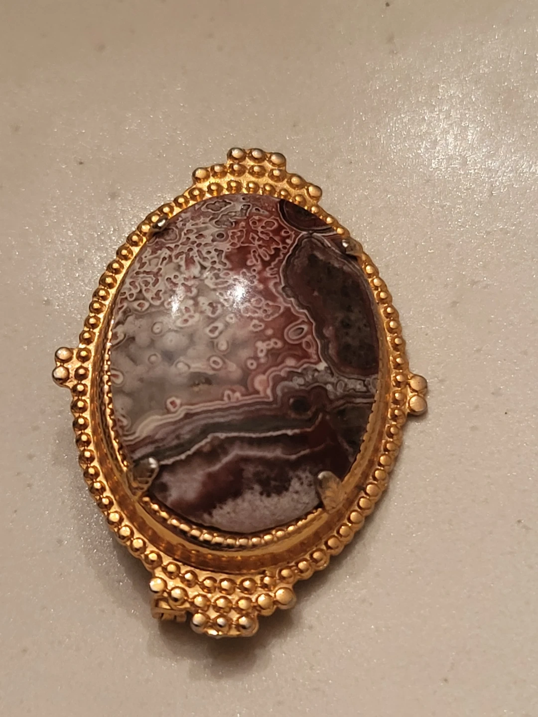 Vintage Agate and Gold-Tone Brooch