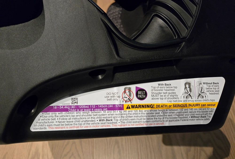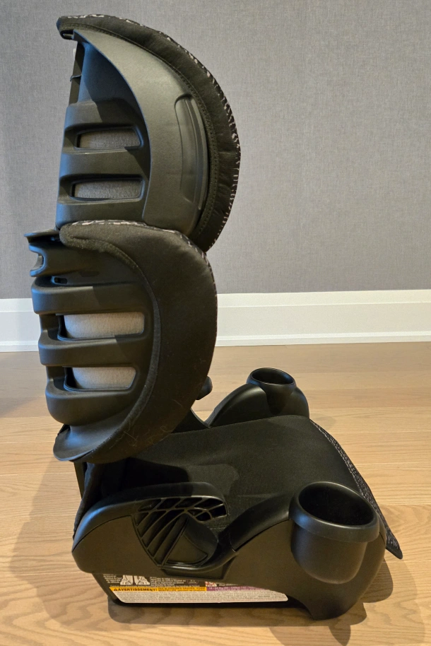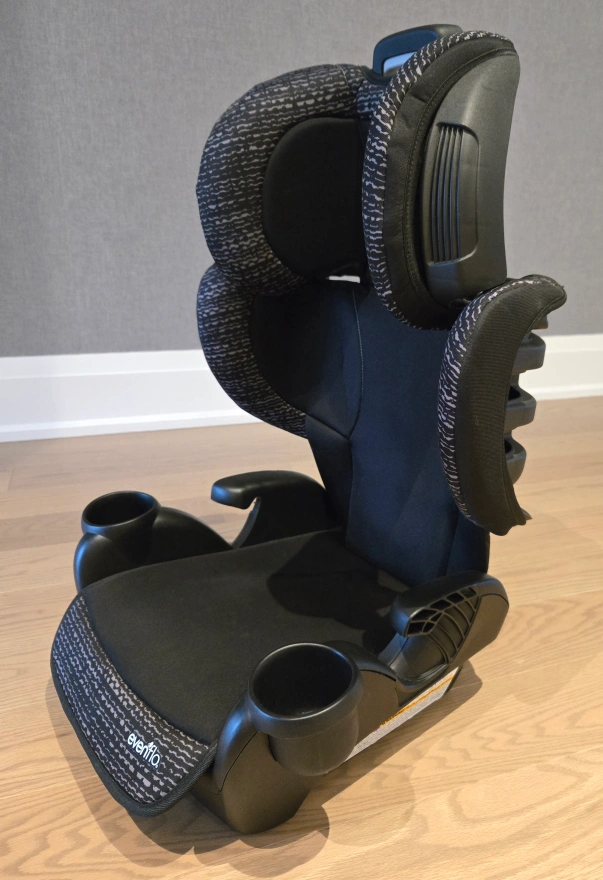 A pre-owned Evenflo GoTime LX Highback Booster Car Seat in Chardon Black in excellent condition. It was installed on a secondary vehicle as a backup only.
