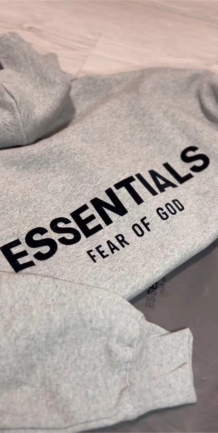 Selling a grey Essentials Fear of God hoodie! It's in great condition and comes with its original packaging. A stylish and comfortable piece to add to your wardrobe!