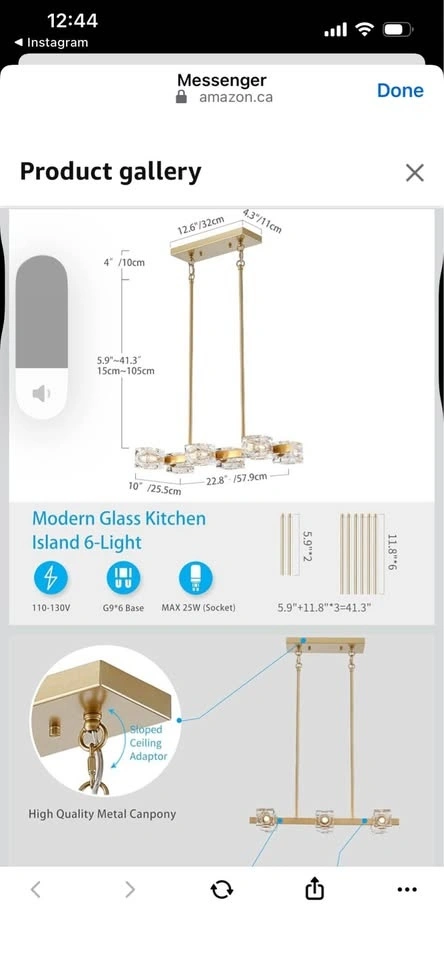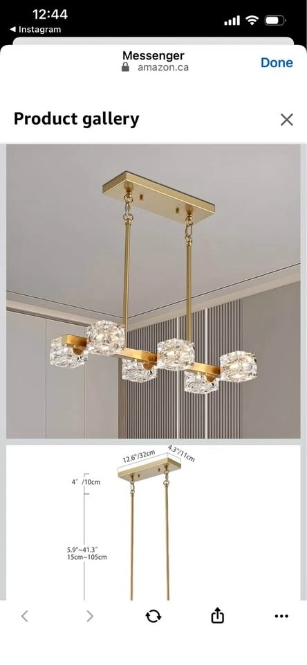 XINGQI Gold Linear Chandelier Sputnik 6-Light Rectangular Kitchen Island Light Fixture. Metal Industrial Farmhouse Pendant for Dining Room, Living Room, Bedroom.