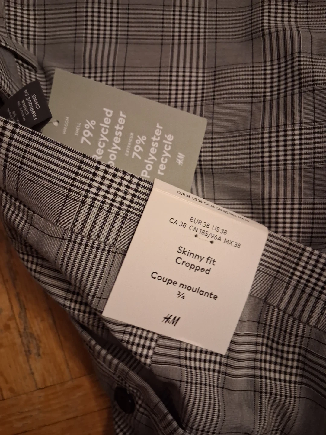 Buy & SellH&M Skinny Fit Cropped Plaid PantsH&M Skinny Fit Cropped Plaid Pants$10Skinny fit cropped pants in a plaid pattern. Made with 79% recycled polyester. Size EUR 38.ConditionNewSize38WHERE TO MEETCheck LocationView MapSELLERverifiedRickyDon Valley Village1216 reviews0 chats·0 favorites·7 viewsSEND CHAT TO SELLERHi Ricky! I’m interested in your listing.Hi Ricky! I’m interested in your listing.Get the Karrot app to chatSign In to chat