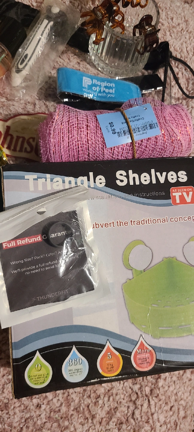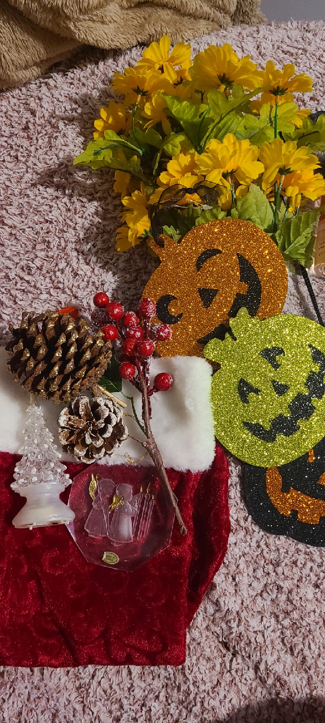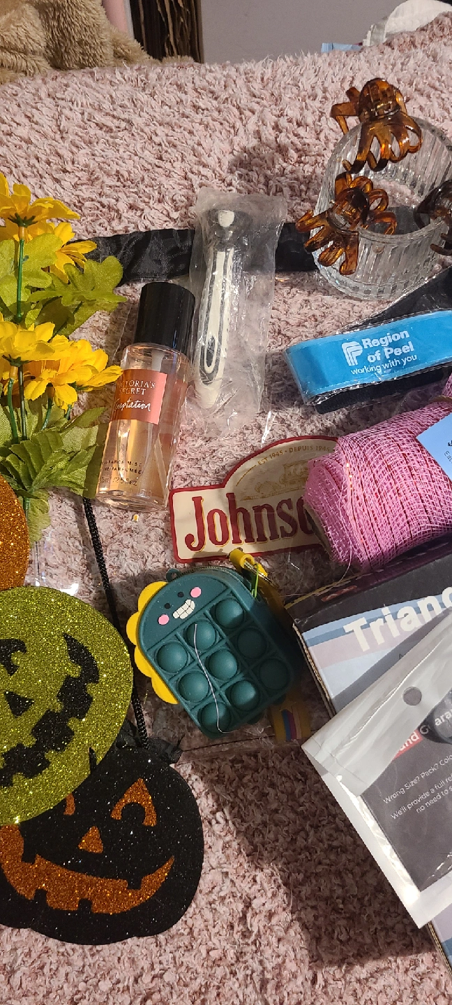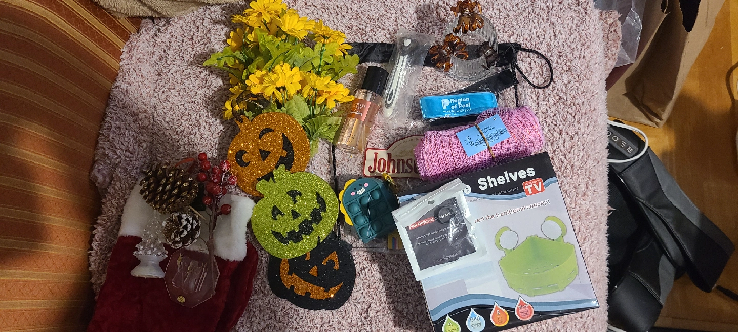 ***MUST TAKE ENTIRE LOT*** **FIRST COME FIRST SERVE** *NO HOLDS* Pick up is Vodden and 410. This lot includes Christmas stocking and decorations Halloween decorations and light reflective band, perfect for trick or treating. Victoria Secret Tempations perfume, practically full Fake flowers, Shower corner caddy, Tulle, Razer handle,candle holder, ring sizer, hairclips, fidget change holder and a clear drawstring bag.