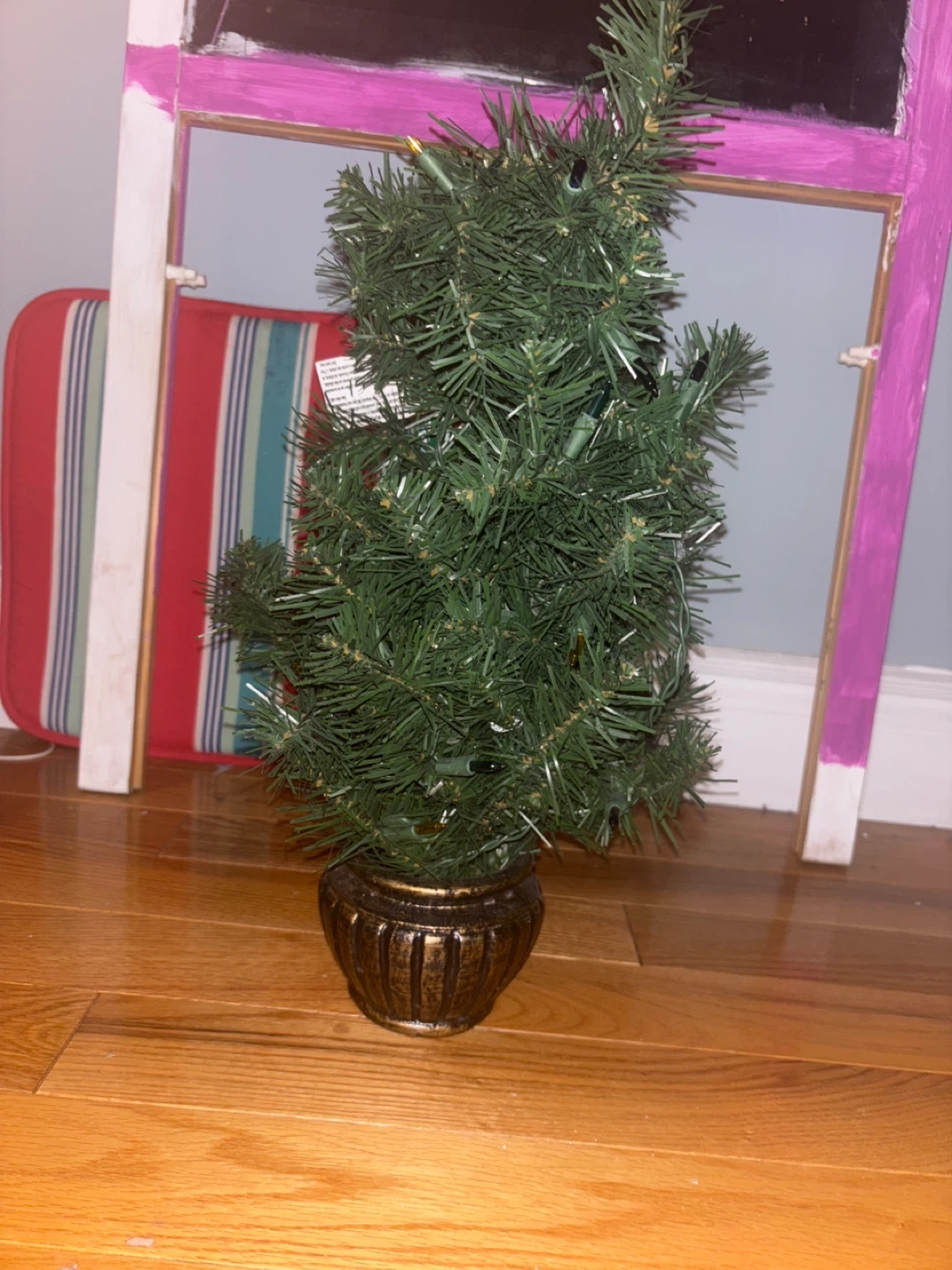 10A cute little Christmas tree in a pot! It's perfect for adding a bit of festive cheer to a small space