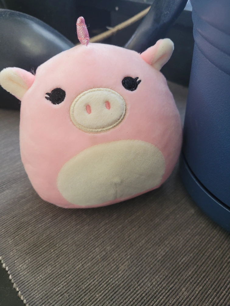 Super cute Squishmallows plush! This is a pink pig, perfect for cuddling. It's in great condition and ready for a new home. The material is polyester, so it's soft and huggable