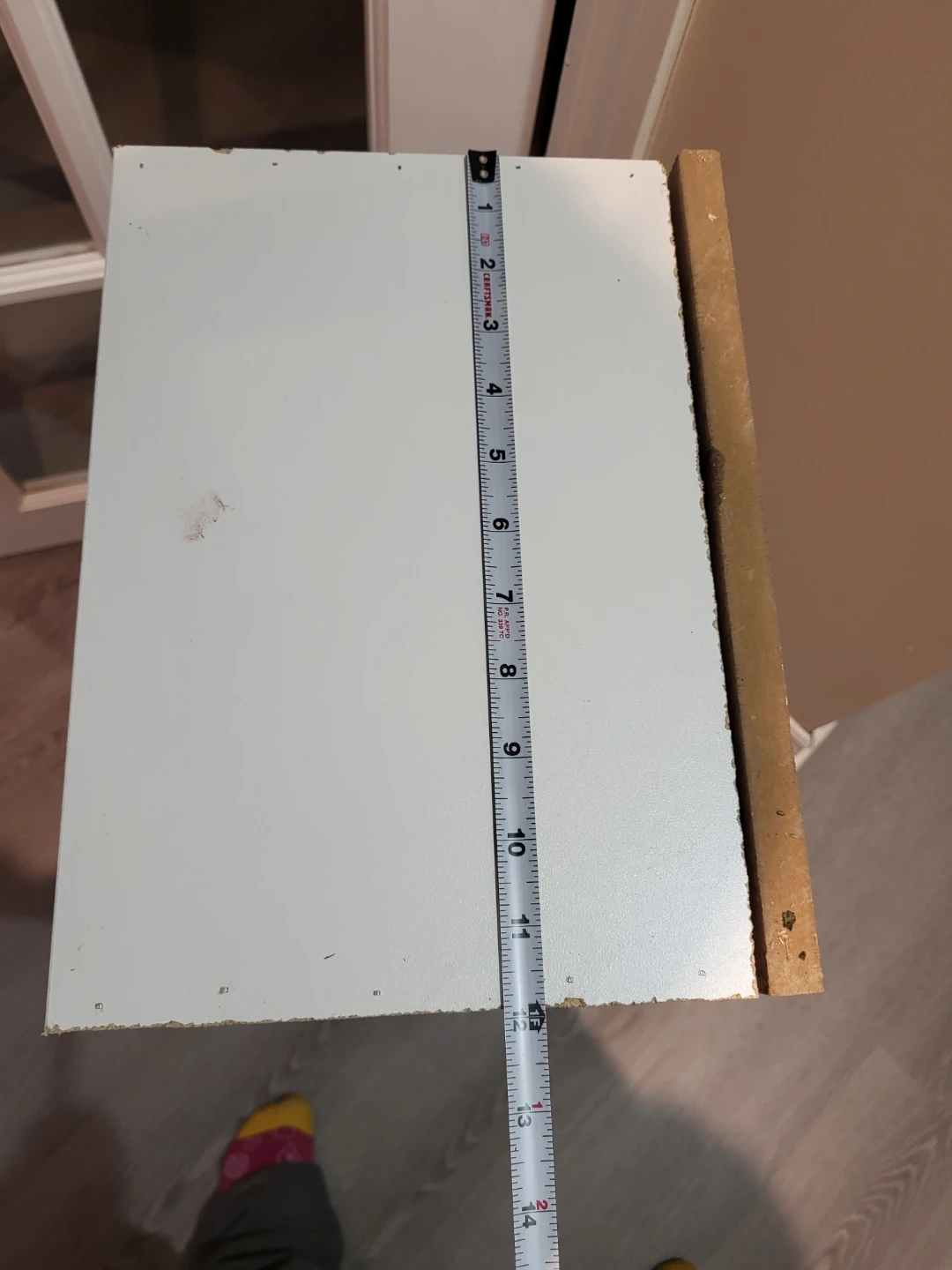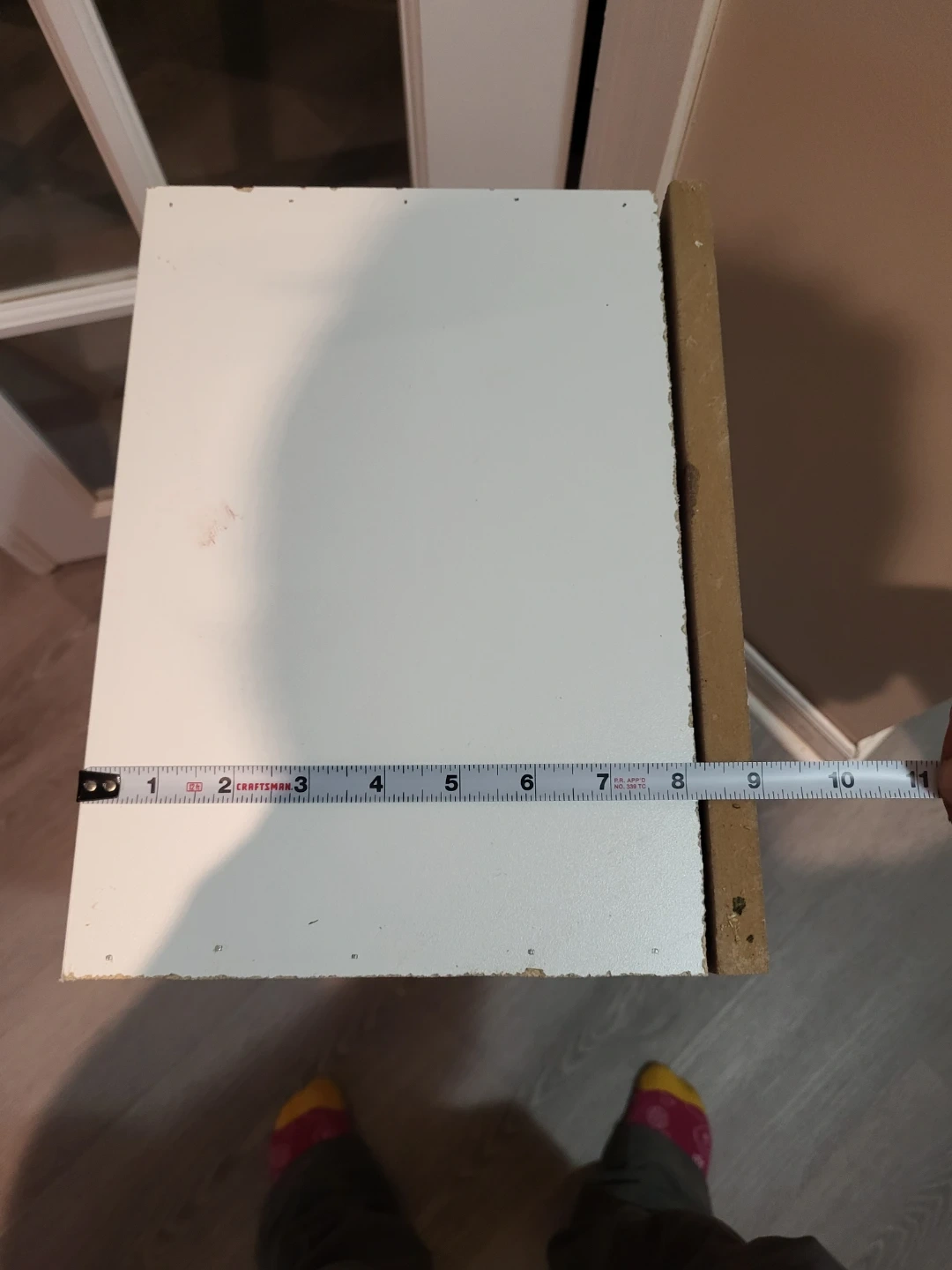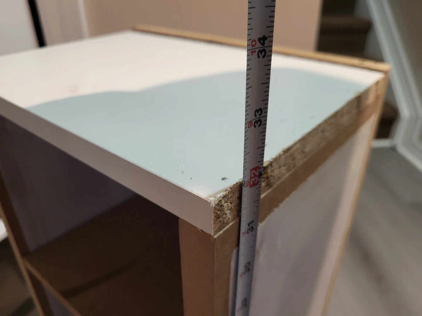 193Selling a small shelf unit, perfect for tight spaces! It's white on top and the sides are a light brown colour. It measures about 32 inches tall and 9 inches wide.