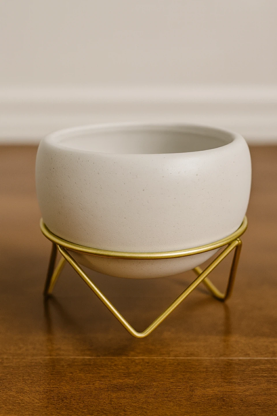 A cute little planter with a gold stand! It's perfect for small plants or succulents and would look great on a shelf or Height 4.5" Diameter 5"