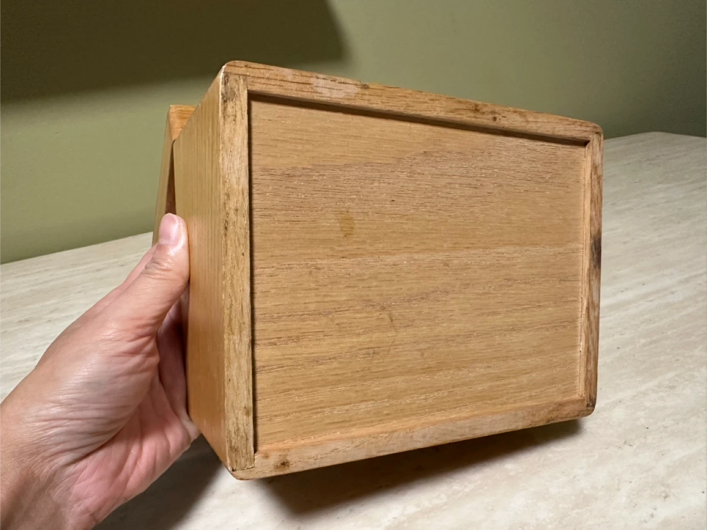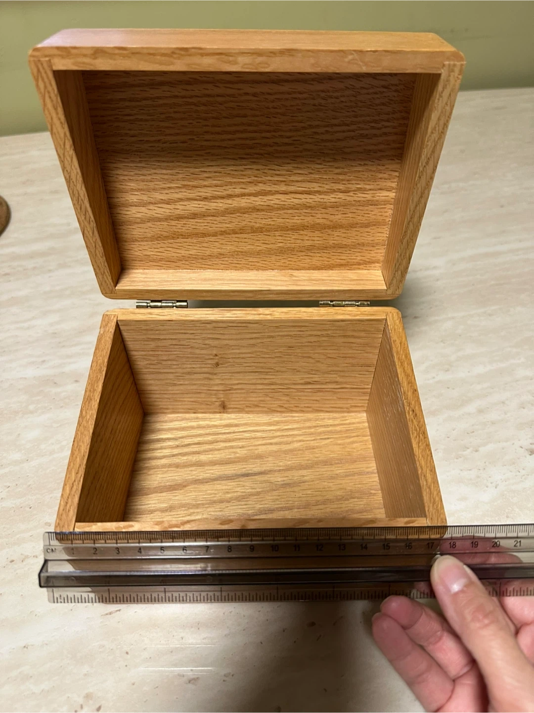 59A cute little wooden box, perfect for storing small items or as a decorative piece! It has a hinged lid and is in good condition. The box measures approximately 7” x 5-1/4” x 5” Use your creativity to make it become a personalized gift!