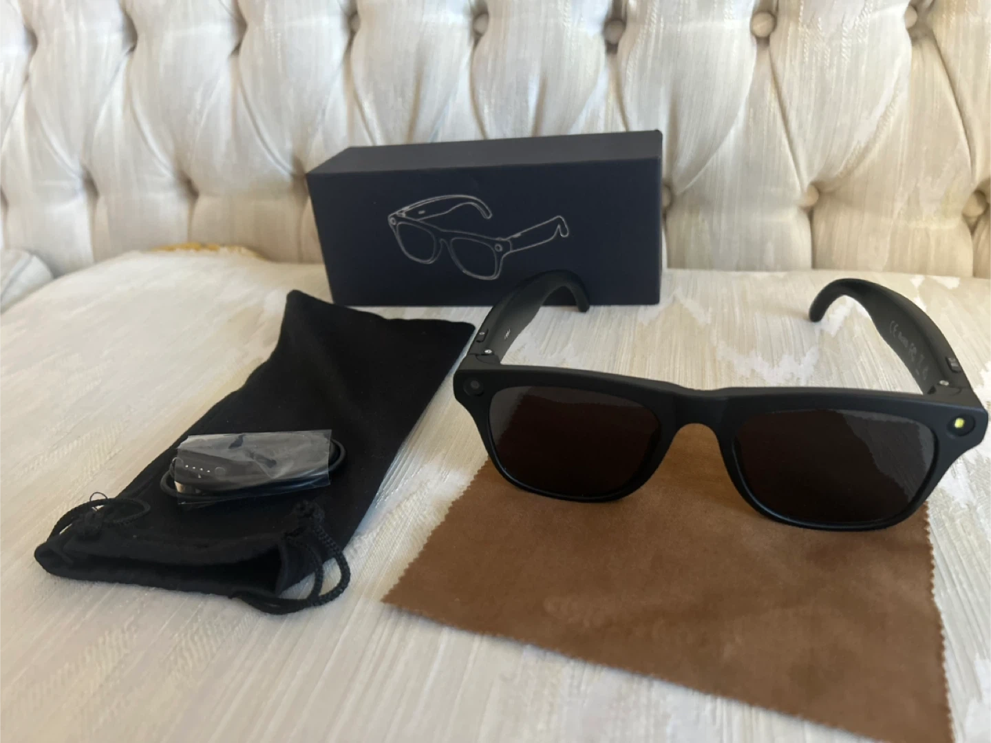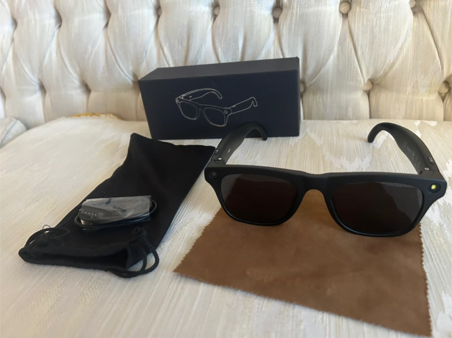Experience the future of tech with these Smart AI Glasses โ brand new, never used, and packed with powerful features: โจ Bluetooth connection for quick pairing ๐ฅ Video & voice recording ๐ธ Photo capture in one tap ๐ค Built-in AI assistant ๐ Real-time translation mode Comes complete with the original box, charger, and glass cleaner โ everything you need to get started.