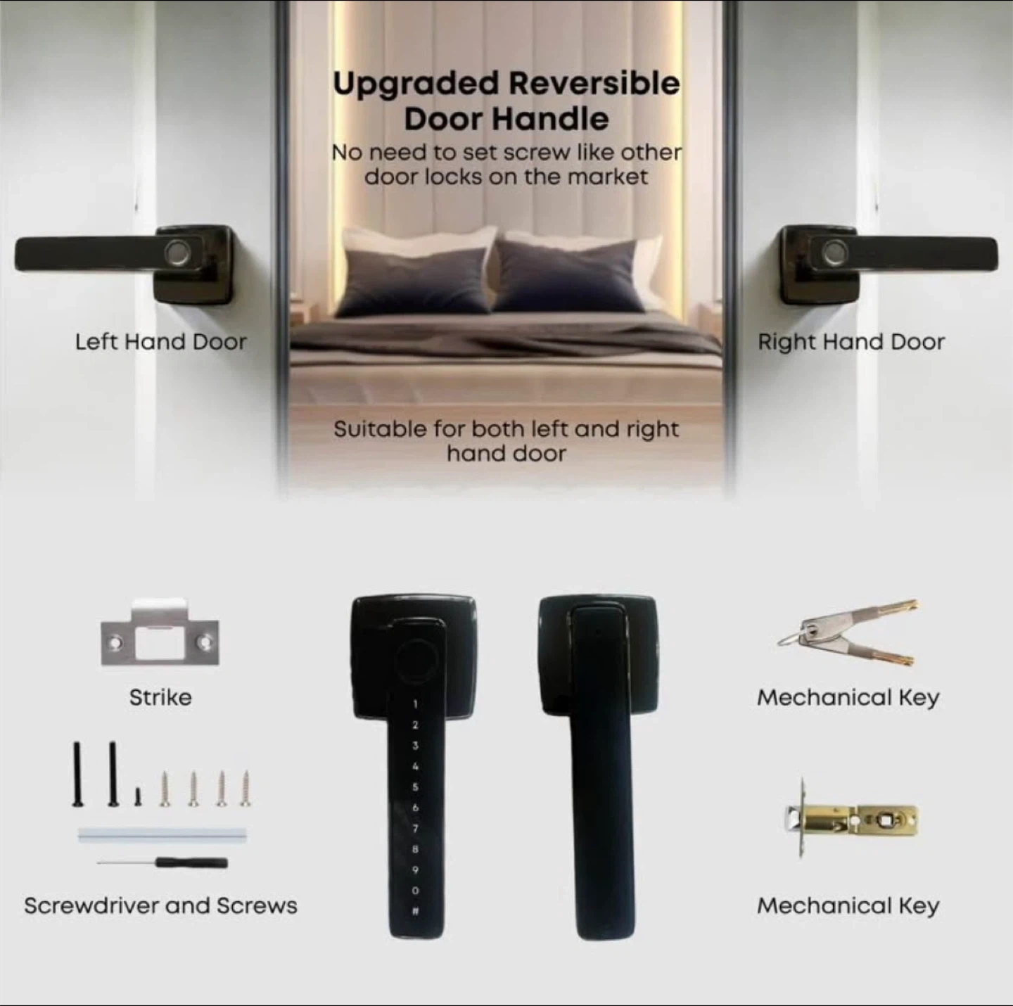 65Selling a brand new smart door lock! It comes in its original box and includes all components. This lock offers multiple unlocking methods: fingerprint, app, PIN code, and even a traditional key. It's designed to be applicable anywhere, from closets and pantries to homes and apartments. The handle is also reversible, making it suitable for both left and right-hand doors