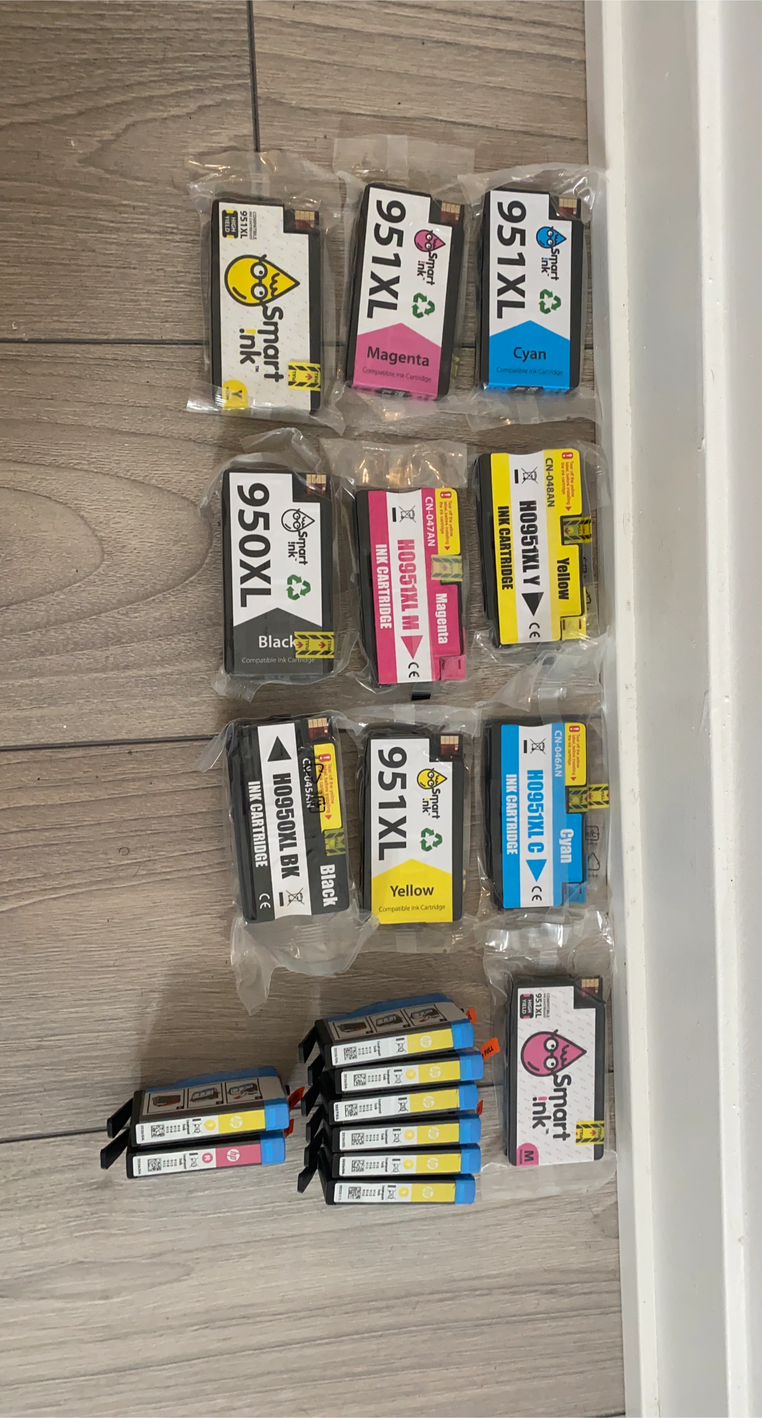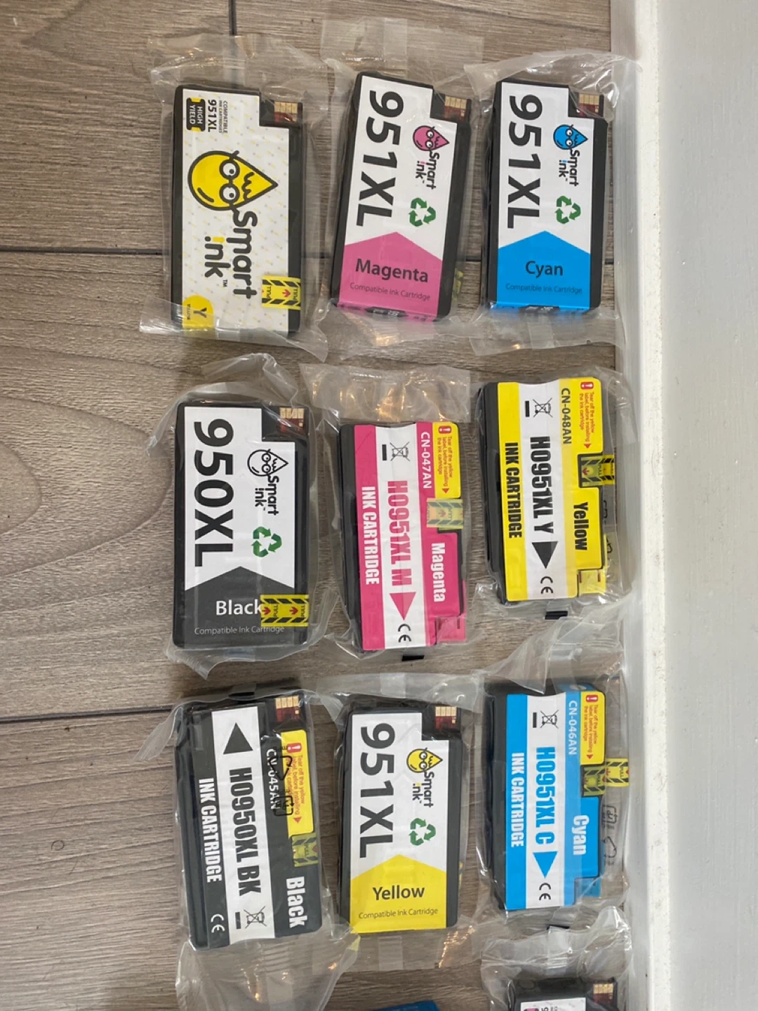 Selling a collection of Smart Ink printer cartridges. These are compatible with 950XL and 951XL printers. There are multiple colours available, including black, cyan, magenta, and yellow. All cartridges are new and sealed in their original packaging