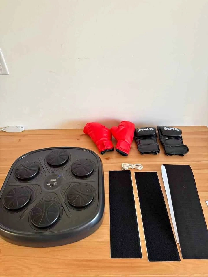 Brand new / great condition Smart music boxing machine with LED light effects and Bluetooth connectivity. Touchscreen control panel with 9 adjustable light and speed modes. Wall-mounted with Velcro – easy installation, no drilling required. High-performance foam for shock absorption and hand protection. Compact and durable – suitable for adults and kids, fun and engaging workouts. Pick-up: North York (Sheppard Ave West / Allen Rd)