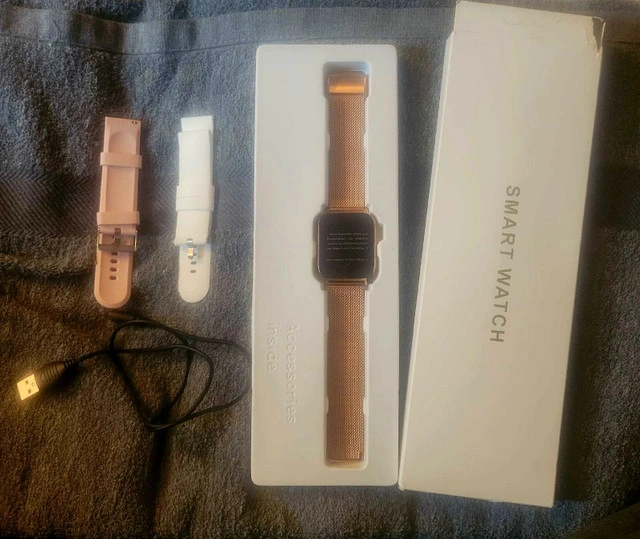 10⚡️⚡️ACCEPTING OFFERS⚡️⚡️ This brand new smart watch comes with multiple straps and a charger, ready to help you track your fitness and stay connected! This smartwatch is perfect for tracking steps, monitoring sleep, and receiving notifications. *Features:* * Multiple interchangeable straps * Fitness tracking capabilities * Sleep monitoring * Notification alerts I've decided to part ways with this watch to further fund my hobby in collecting antique spoons (it's a thing!). I can meet at the local coffee shop, where we can both enjoy a warm beverage while you inspect your new smartwatch.