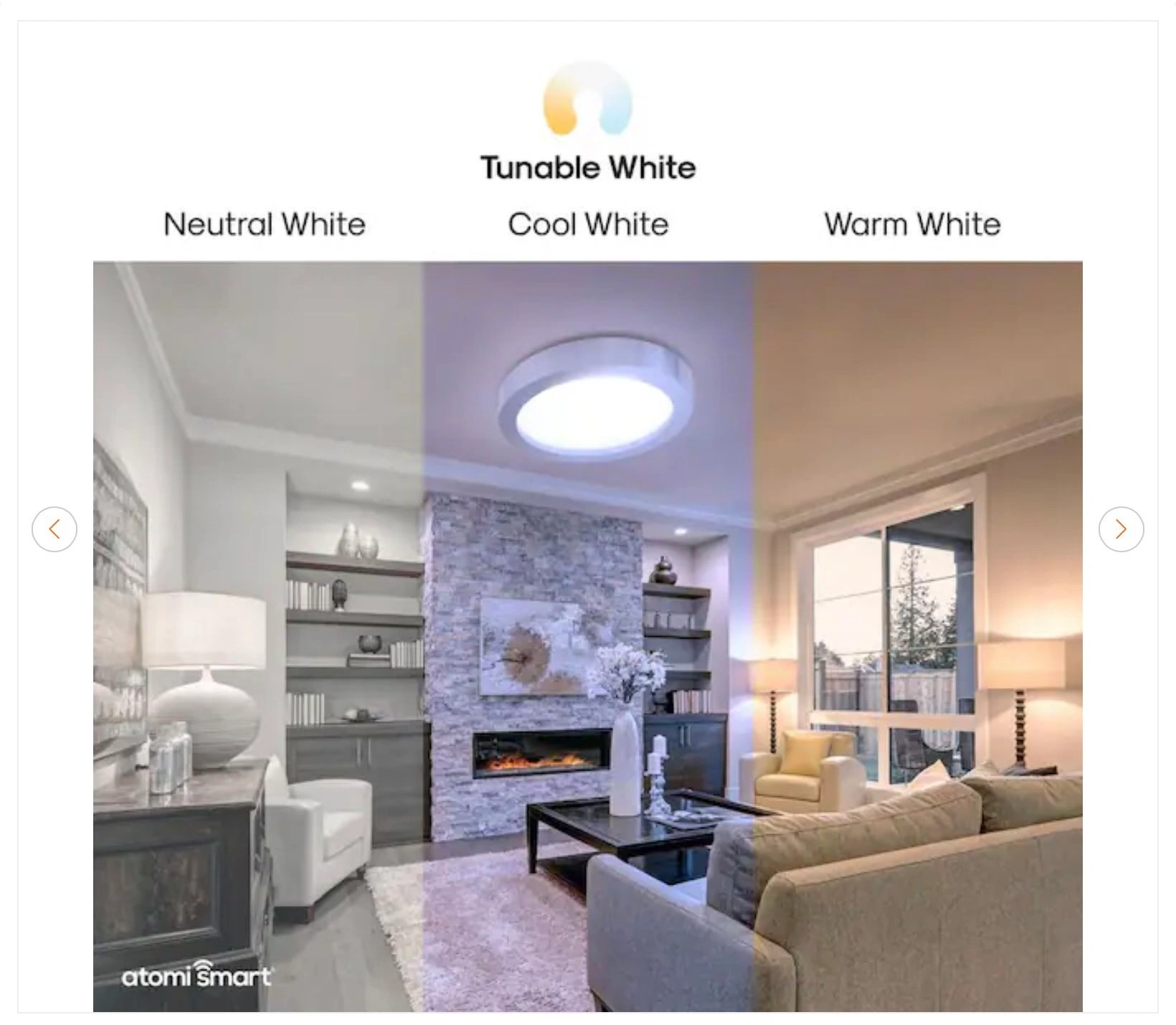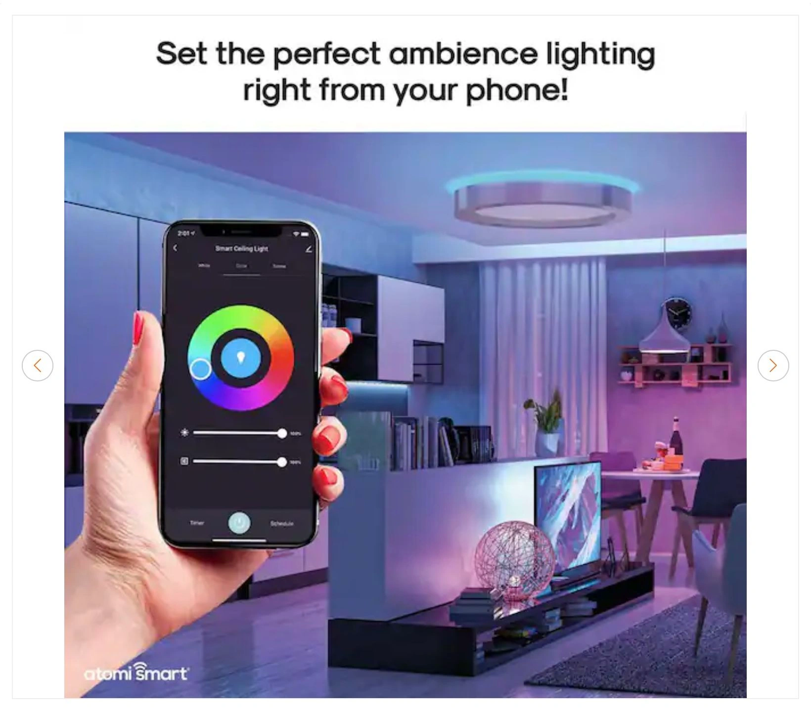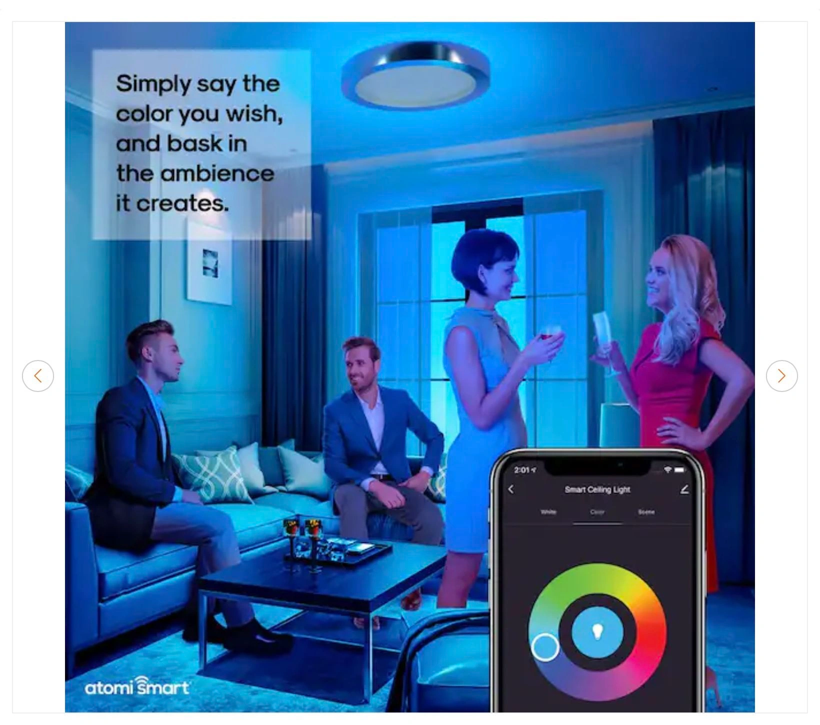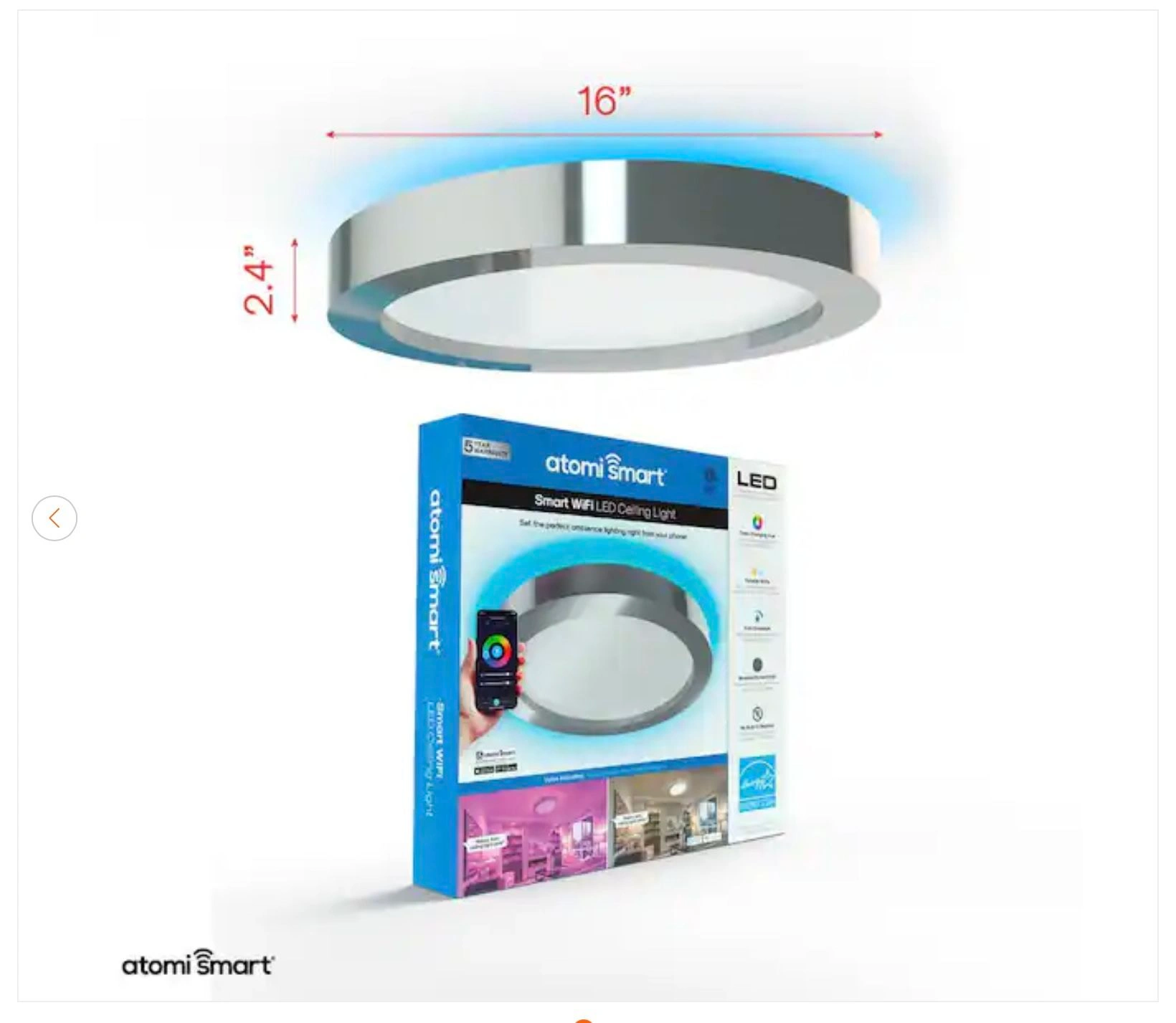 Brand New atomi smart Smart WiFi 16 in. LED 1-Light White and Color Changing Brushed Nickel Smart WiFi LED Flush Mount Ceiling Light