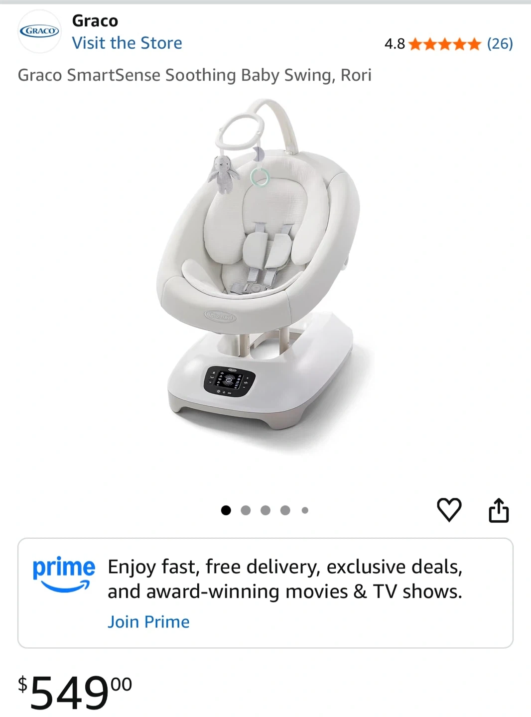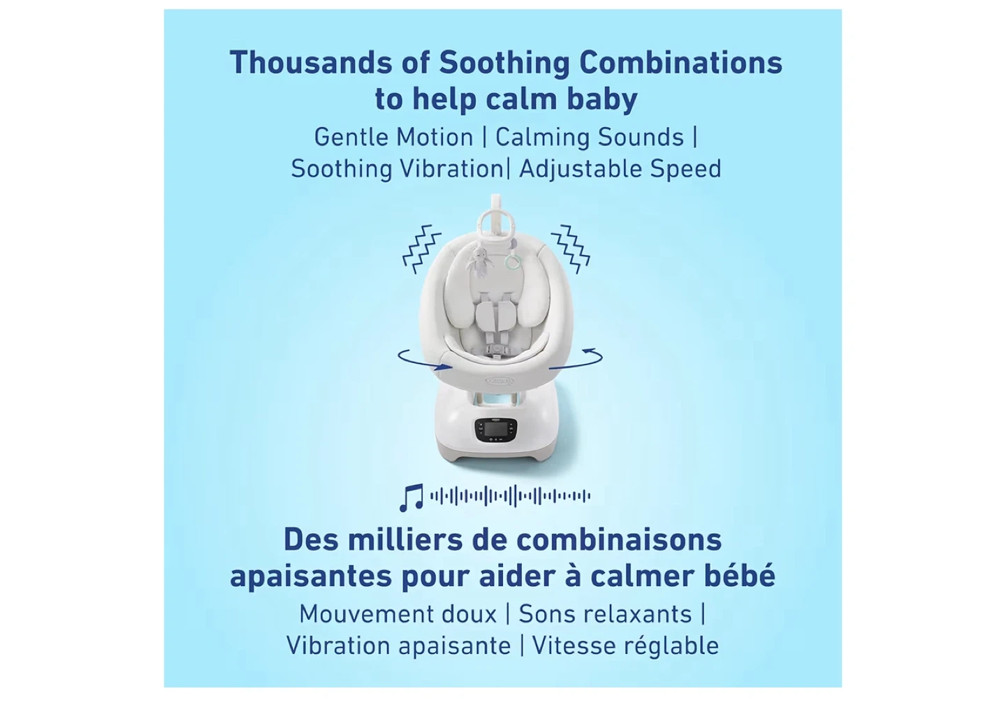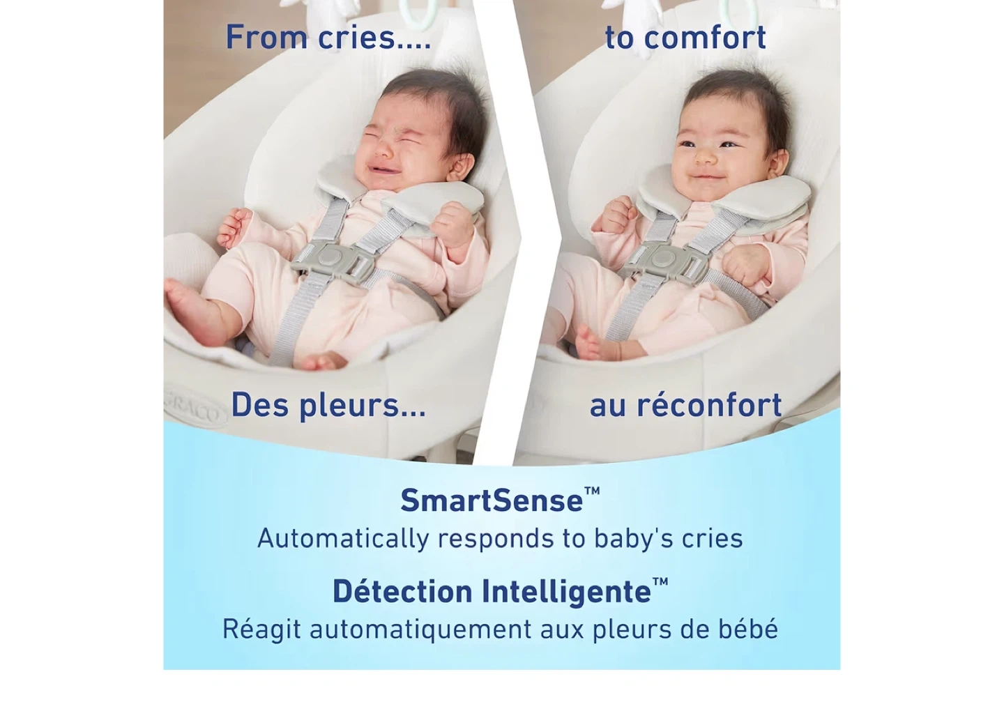 15It’s new, only opened the box to check it. It will come with a box , never used it. Need to assemble. It features: - A toy bar with soft toys - Organic cotton fabrics on cozy body support - A 5-point harness with harness covers - A 3-position recline - Calming vibrations with multiple speeds - Soothing songs and sounds It also has SmartSense technology that automatically responds to baby's cries, offering gentle motion, calming sounds, and soothing vibration at adjustable speeds to help calm your baby