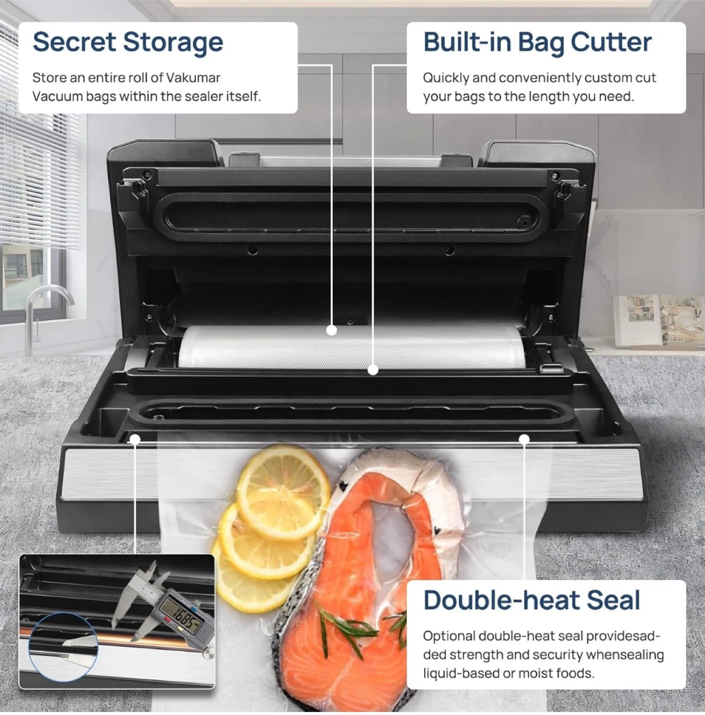 It also has a built-in bag cutter and storage compartment, so you can make custom-sized bags without needing extra