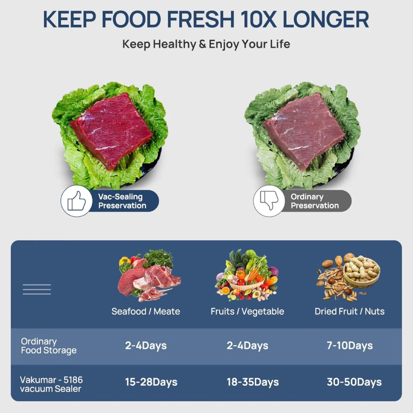 The locking handle design makes it simple to close and seal with one hand, and the double heat-seal system creates a strong airtight seal that helps keep food fresh up to 10 times longer. It’s great for meal prep, leftovers, and freezer storage.
