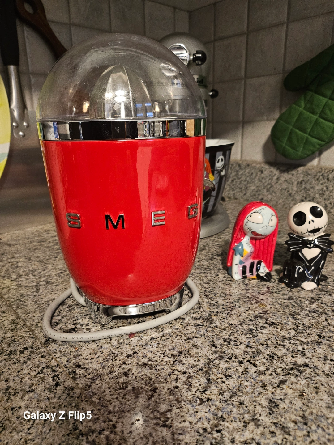 SMEG red citrus juicer. Compact design. Durable construction. Easy to clean.