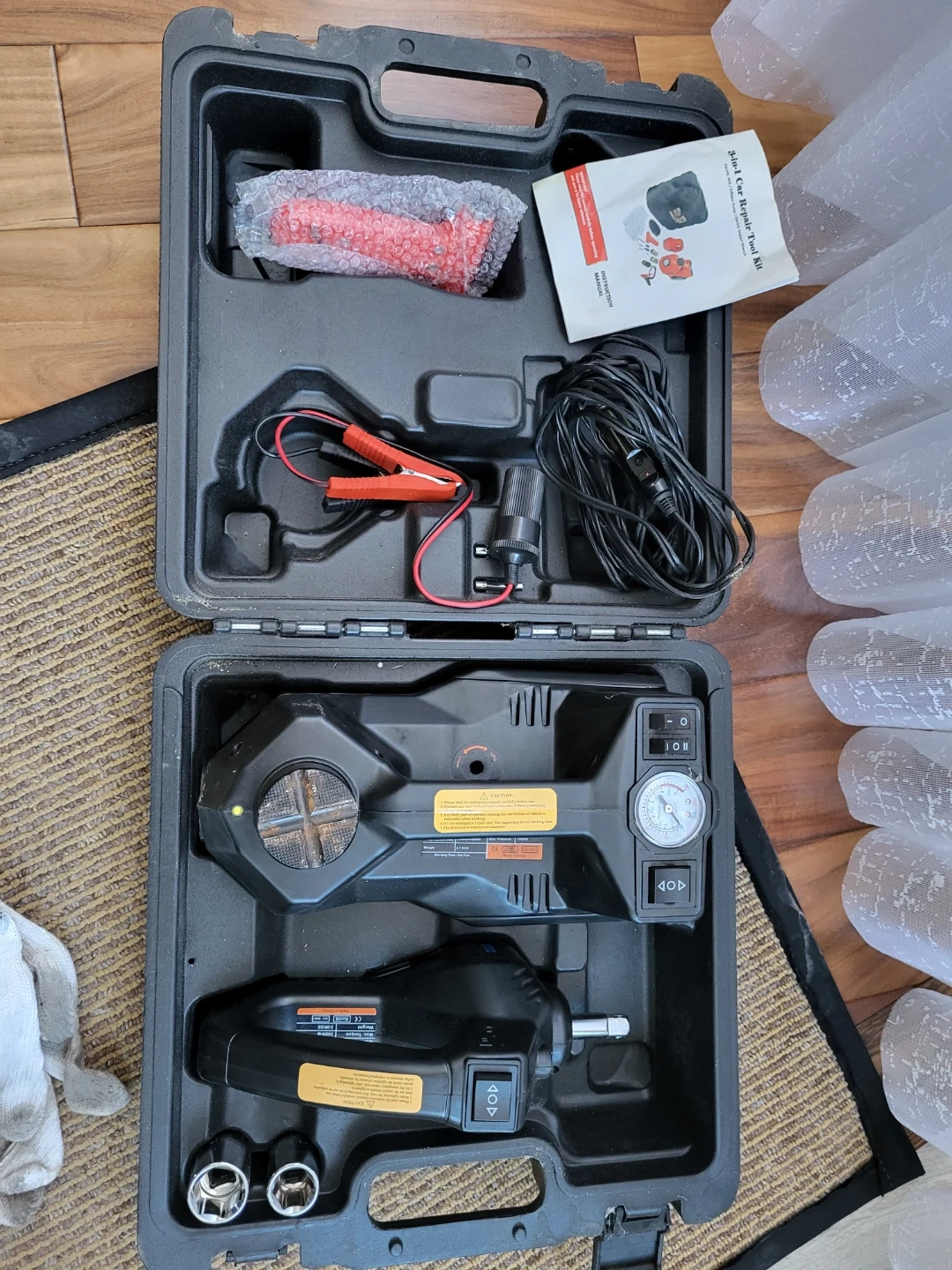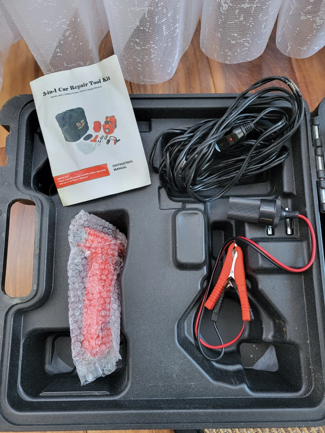 3-in-1 Tool Kit: Electric Jack, Impact Wrench, Air Pump