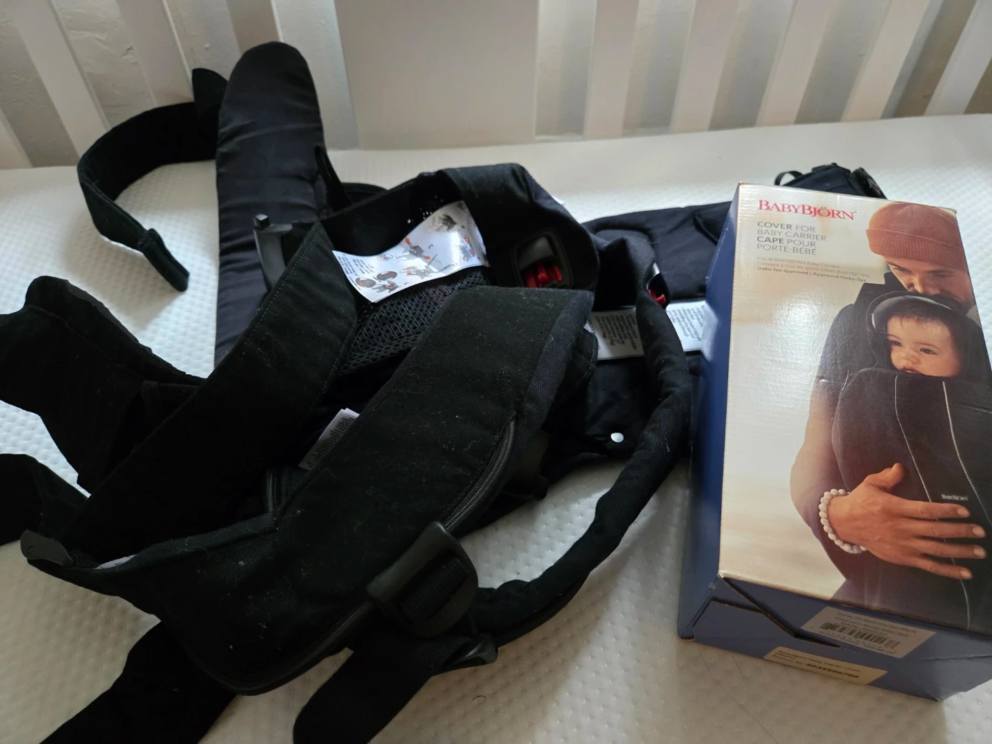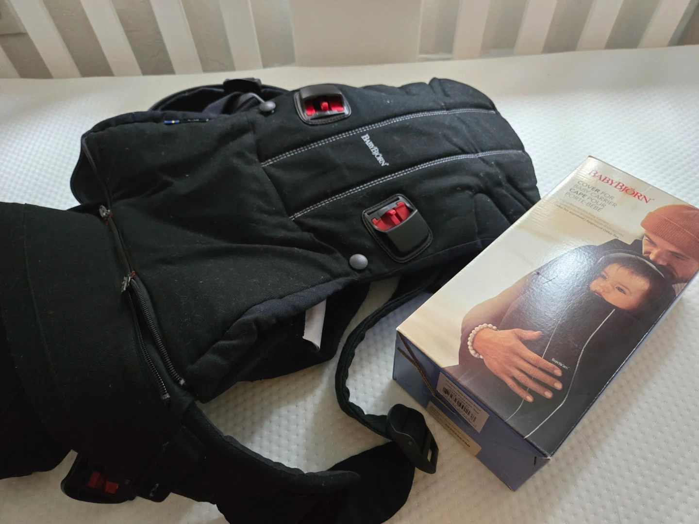 Selling a BabyBjorn One baby carrier in black! Babybjorn very good condition comes with add ons cover and changeable bibs. Never opened the box had 3 carriers so this is fairly new.