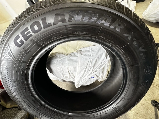 For sale: set of 4 Yokohama Geolander X-CV G057 All Season Tires. Wheels are not included. $1000 for all 4 tires. These retail brand new for $420 plus tax per tire. Thread depth 10/32” Pick up in Whitby North. Serious buyers only.