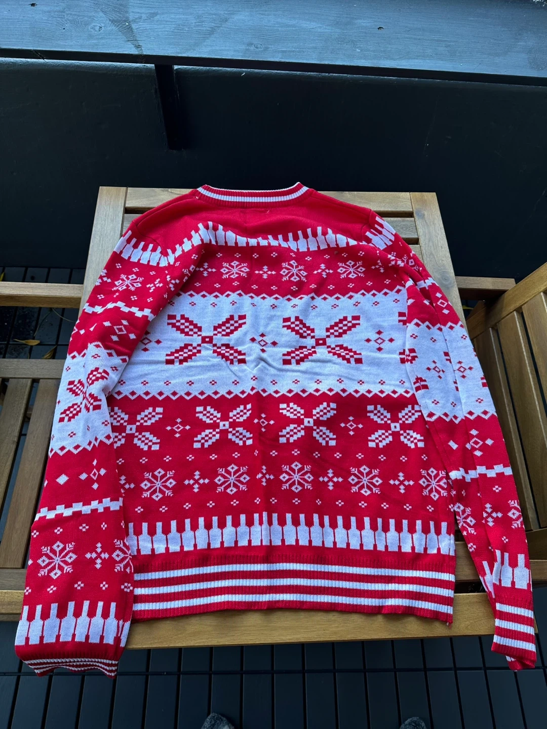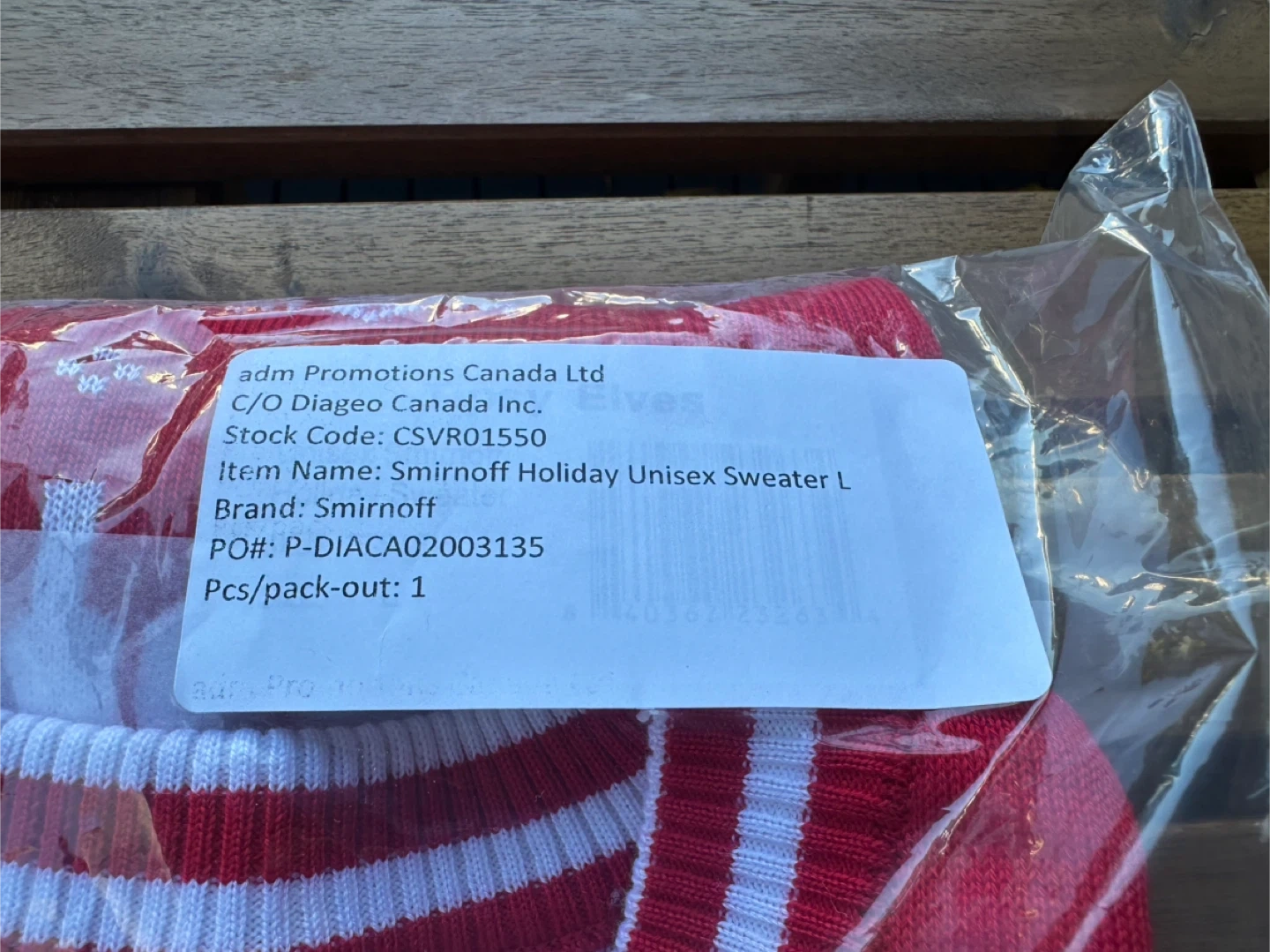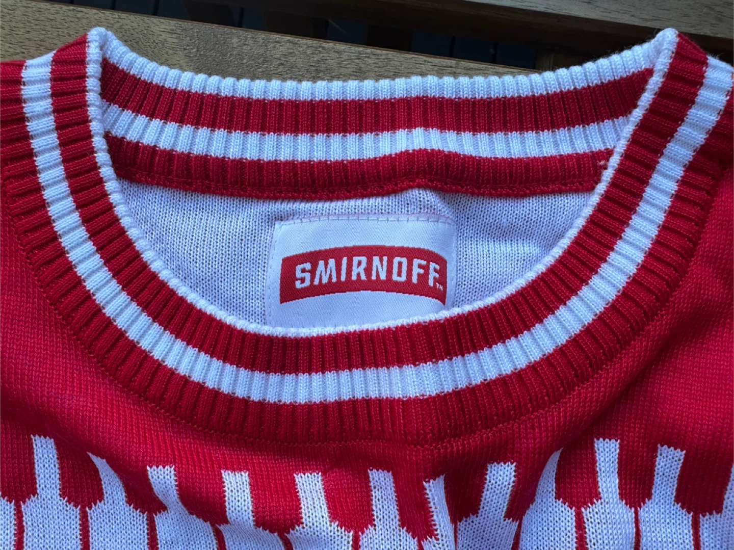 84Selling a brand new Smirnoff Holiday Unisex Sweater in size L! The sweater is red and white and features a festive design with snowflakes and the Smirnoff logo. Perfect for the holiday season!