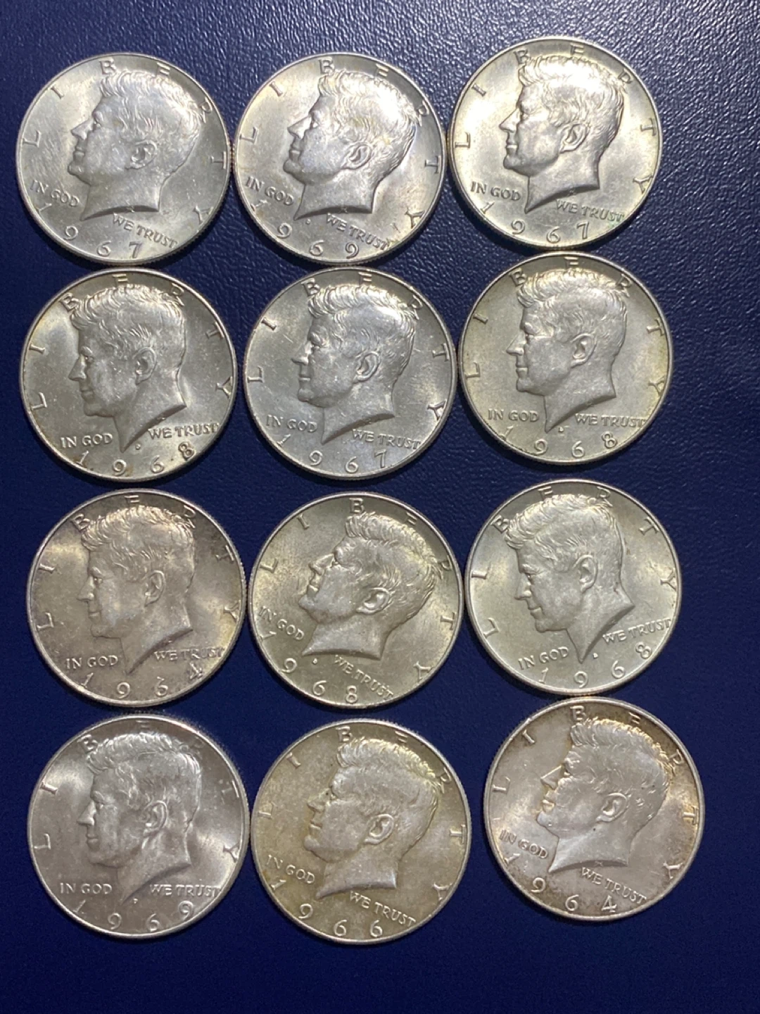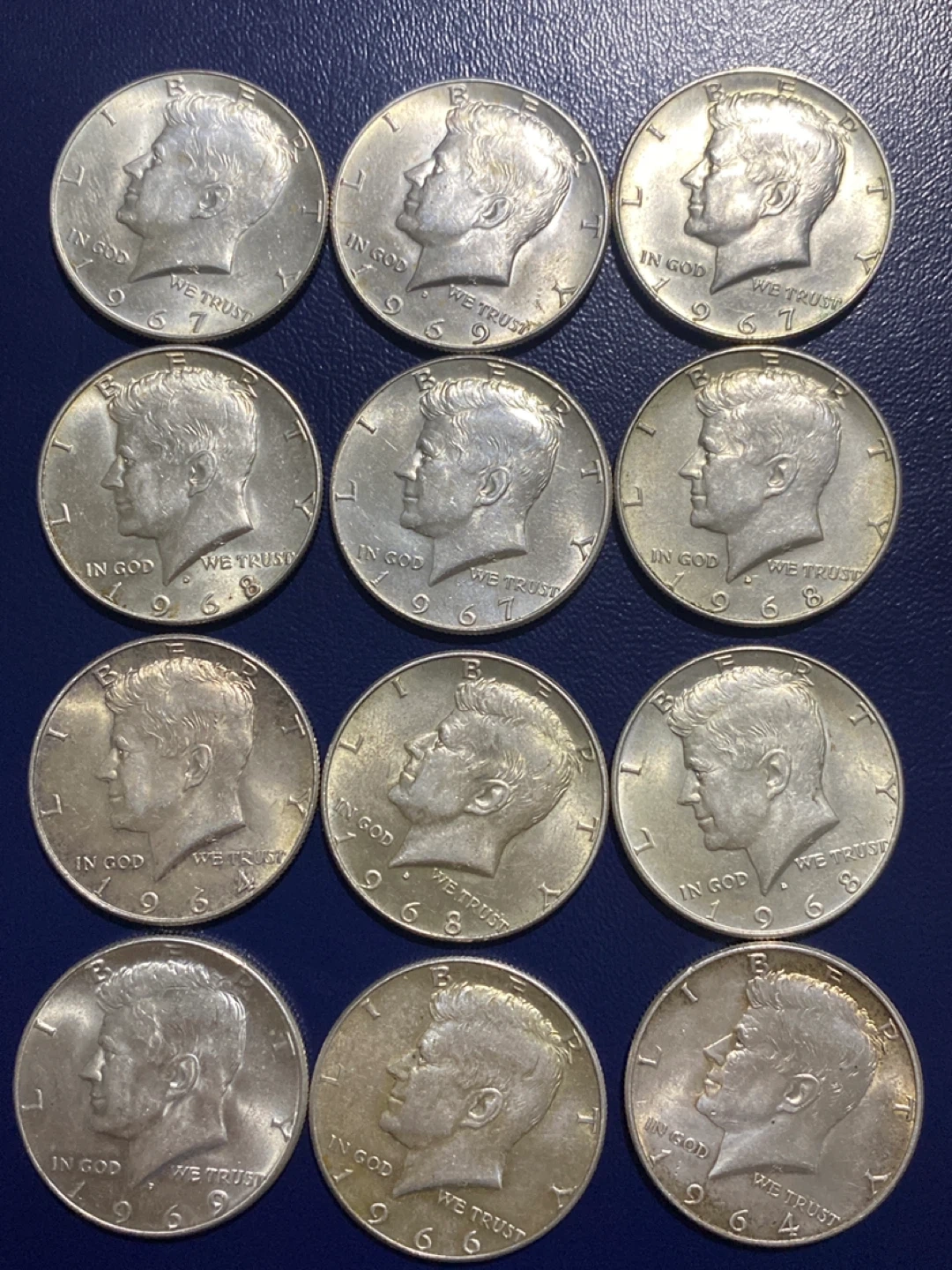 Collection of 12 silver Kennedy Half Dollar Coins