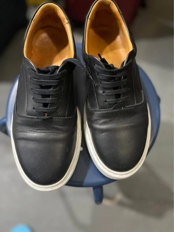 Step out in comfort and style with these sleek black leather sneakers bought from Brown’s. Minimalist and versatile – perfect for casual, office, or smart-casual wear.