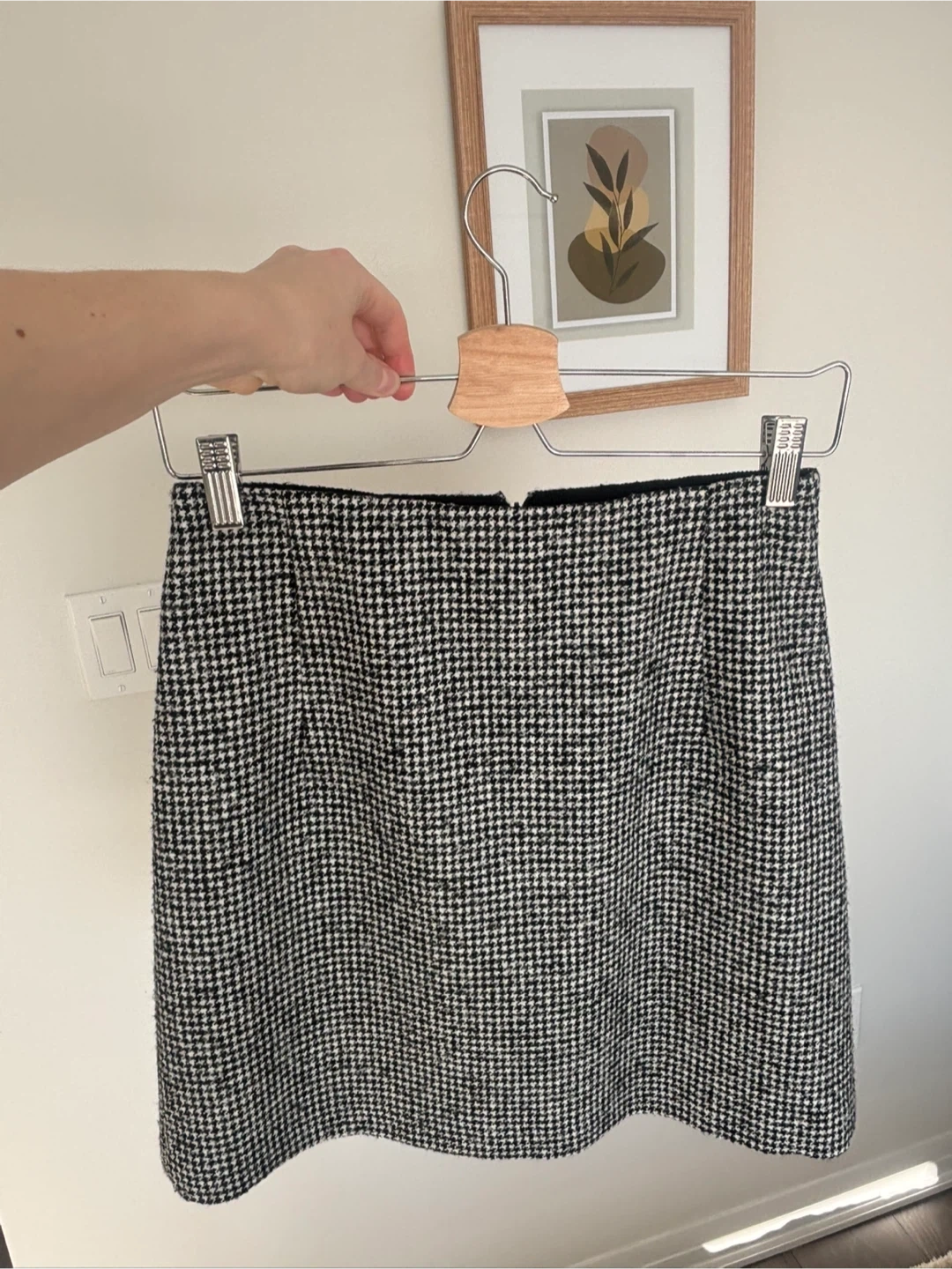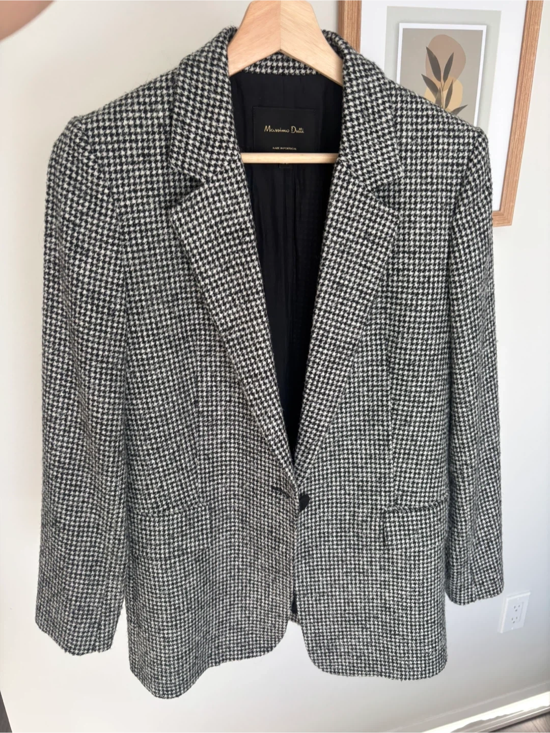 This is a matching Massimo Dutti blazer and mini skirt set in a classic houndstooth pattern. Both pieces are made in Portugal. The blazer is a size EUR 36 / US 4 / MEX 26. The skirt is size EUR XS / US XS / MEX 26. Only wore a couple times.