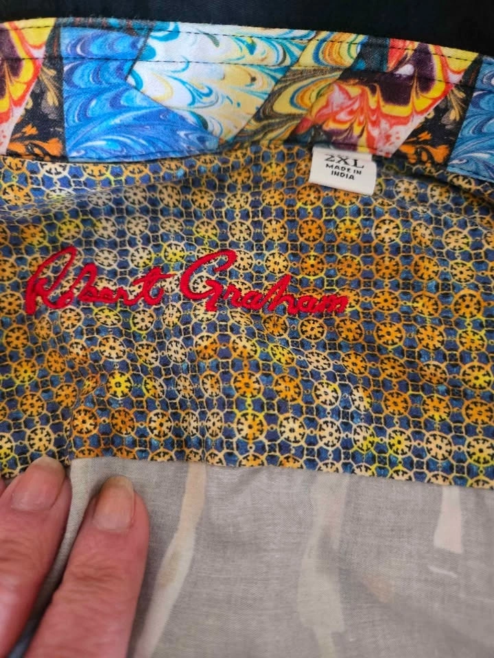 Men's 2XL Robert Graham dress shirt with embroidered cuffs. This is a high-quality brand; some shirts sell for over $1000. Located in Huntington Hills NW.