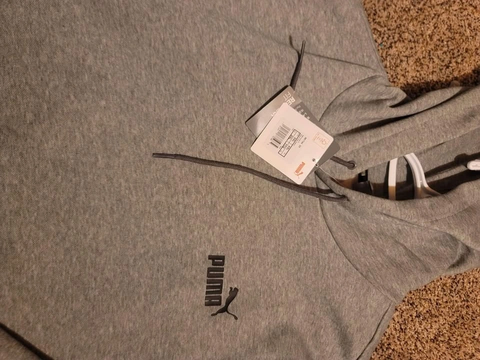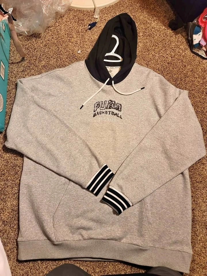I have 3 unworn sweatshirt and Puma hoodies for sale at $25 each. The Puma hoodies are size XXL, and the sweatshirt is size XL.
