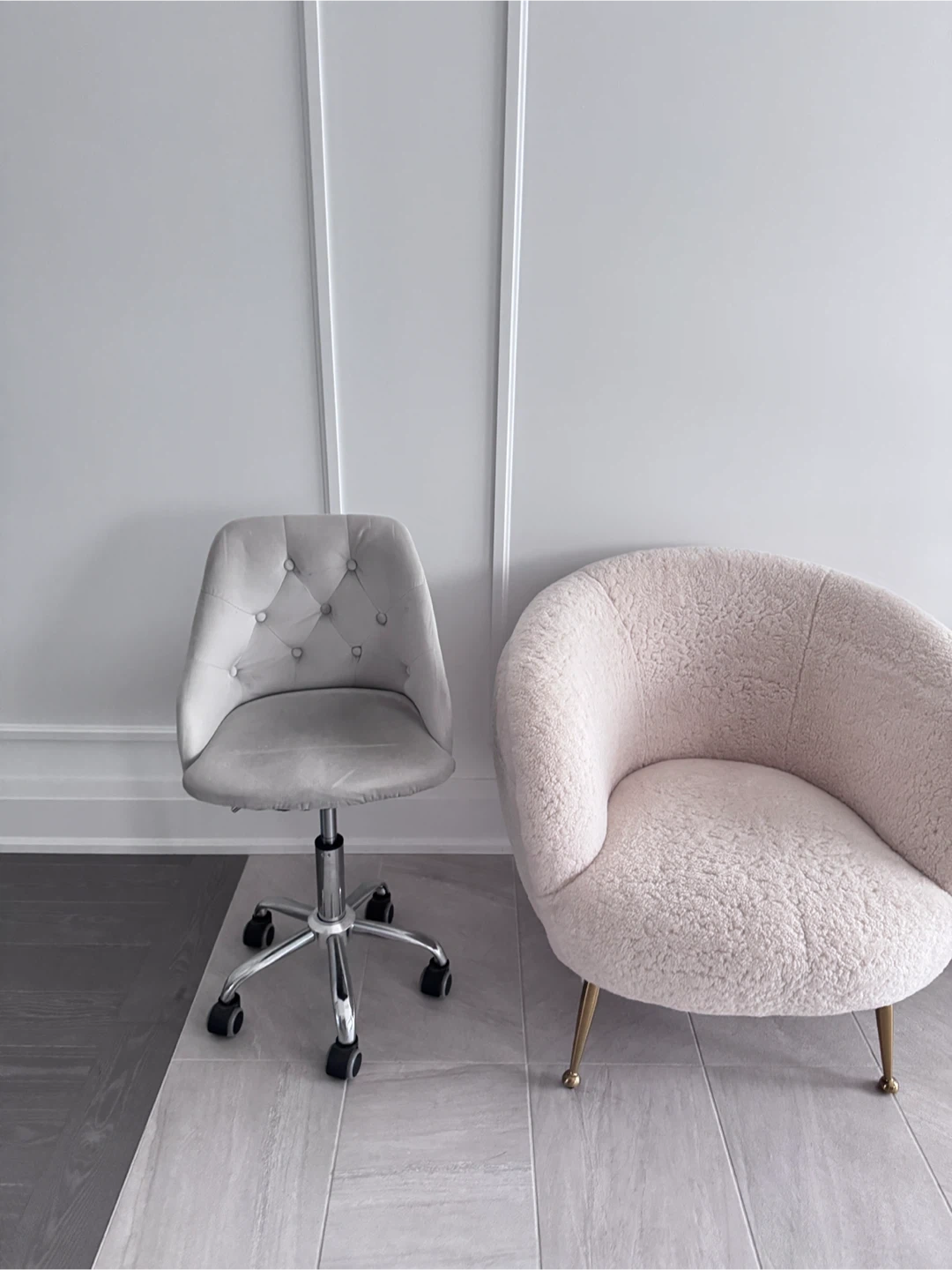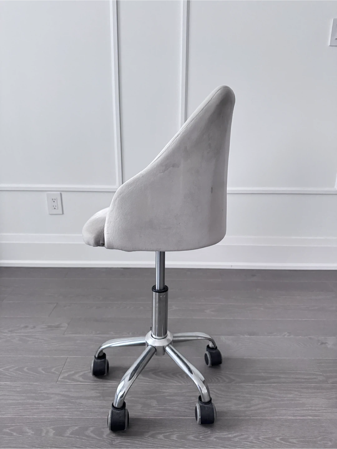 Selling a comfortable small grey velvet swivel chair! It's in great shape and ready for a new home.
