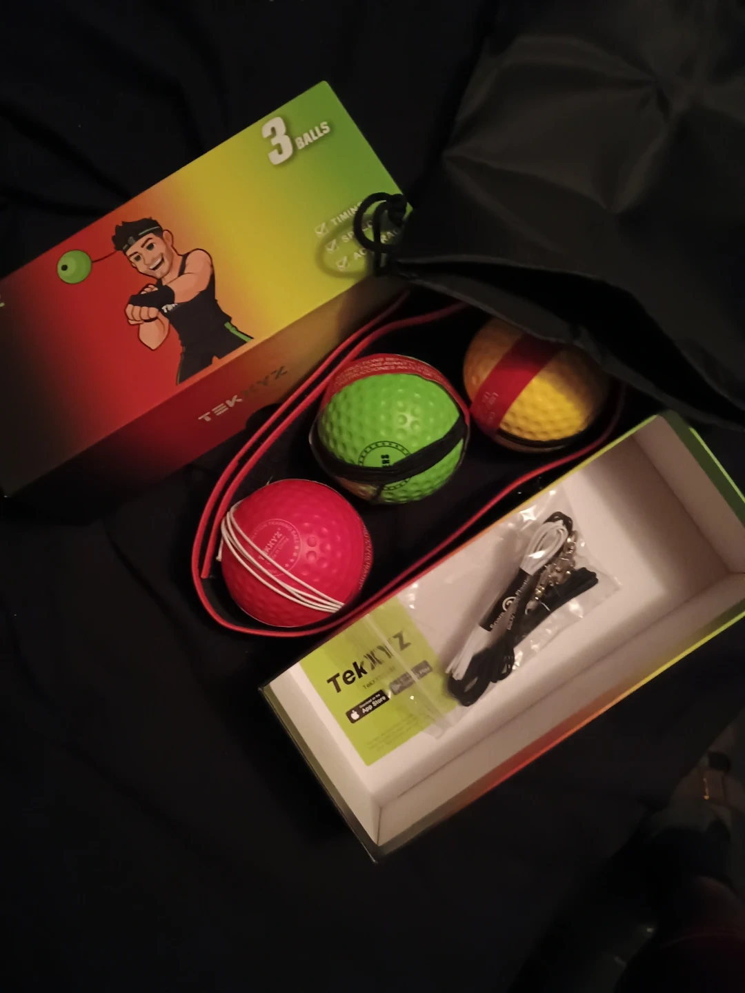 This set includes three reflex training balls with adjustable elastic cords. The balls are designed to help improve timing, speed, and accuracy. Includes a storage bag and other accessories. These balls are great for boxing and general sports training!