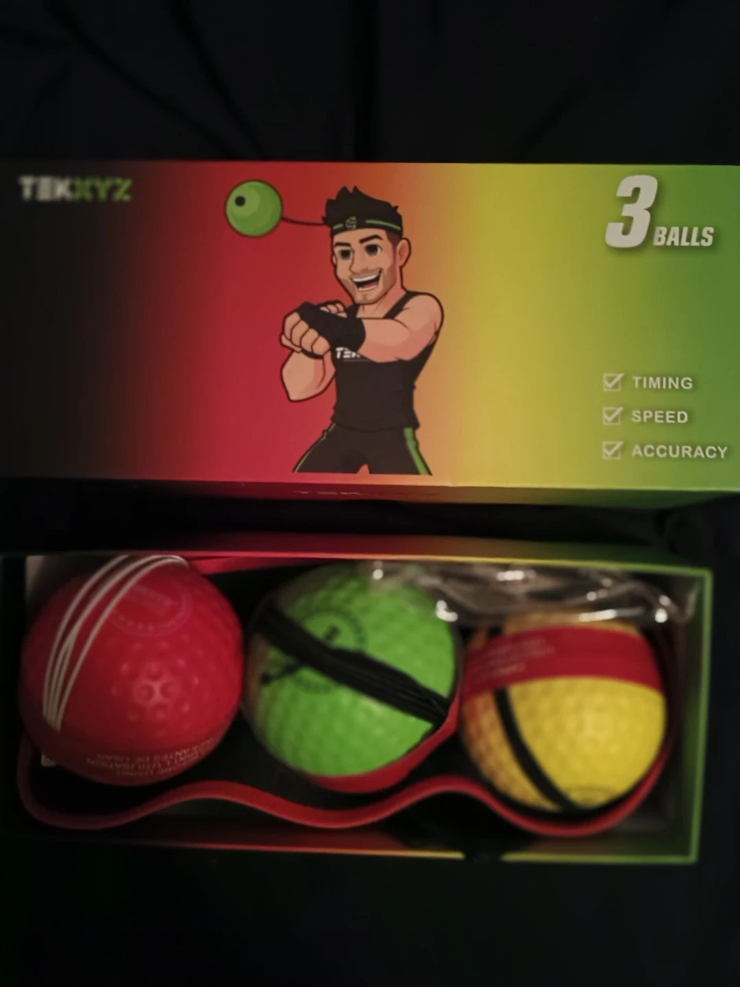 This set includes three reflex training balls with adjustable elastic cords. The balls are designed to help improve timing, speed, and accuracy. Includes a storage bag and other accessories. These balls are great for boxing and general sports training!