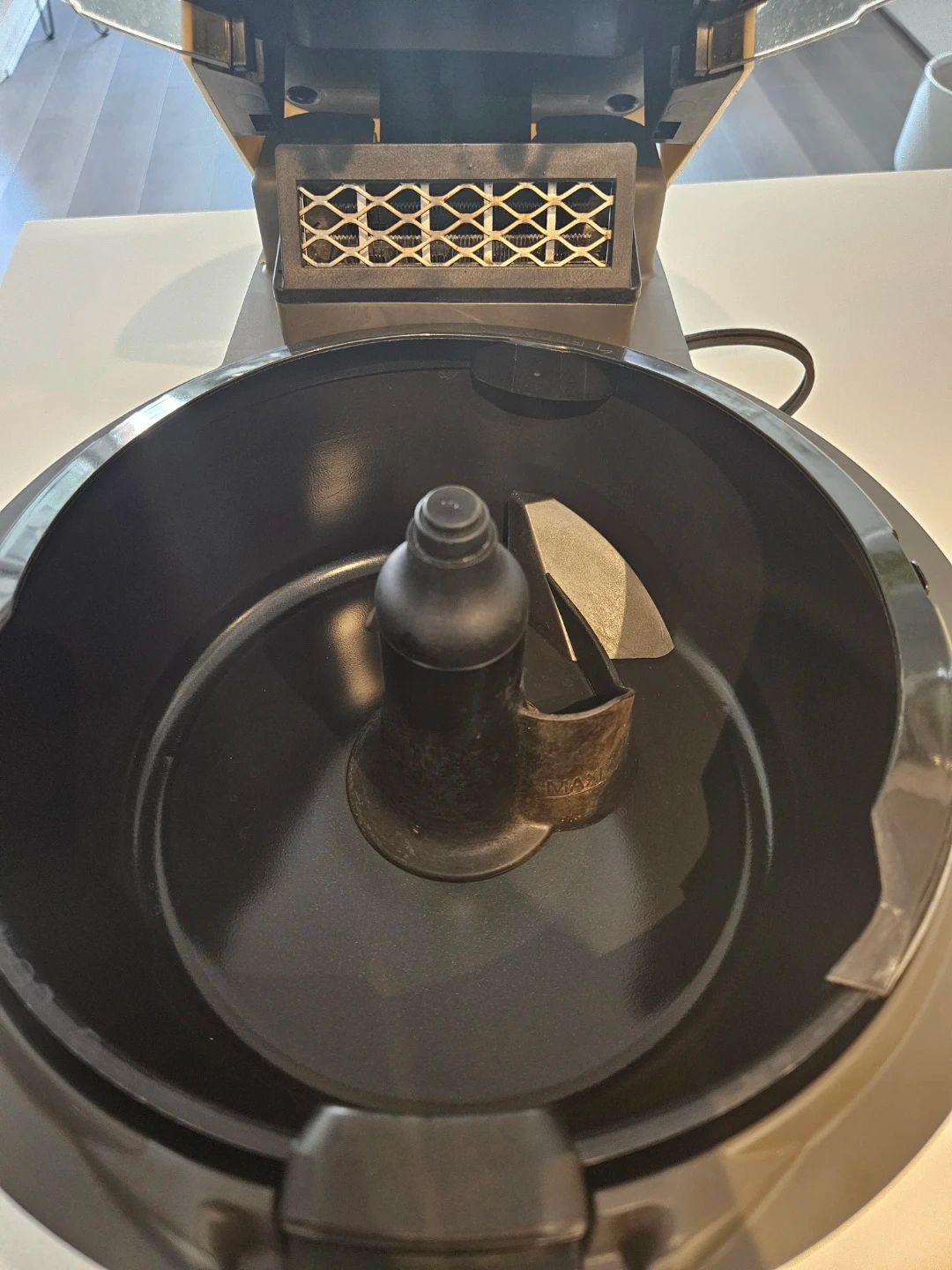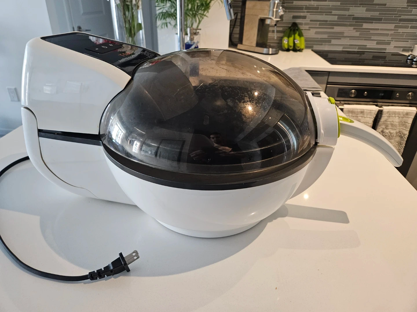 This T-fal Actifry Express Family air fryer is a kitchen appliance for convenient cooking. It features a stirring paddle for even cooking results. Its transparent lid lets you monitor your food easily.