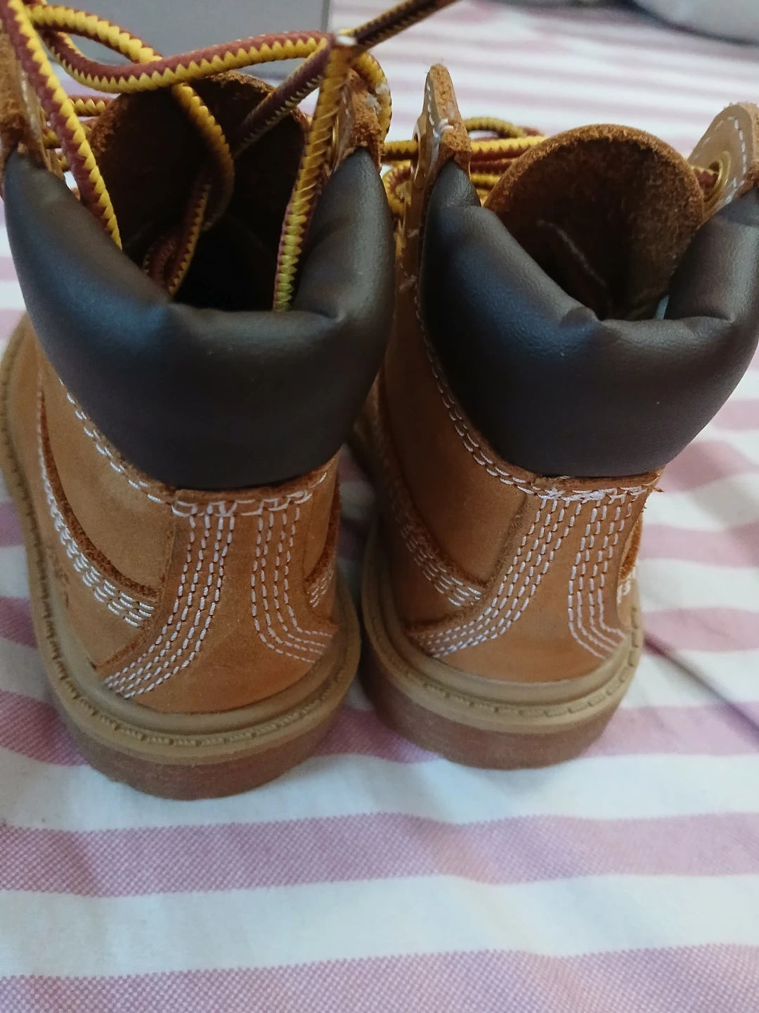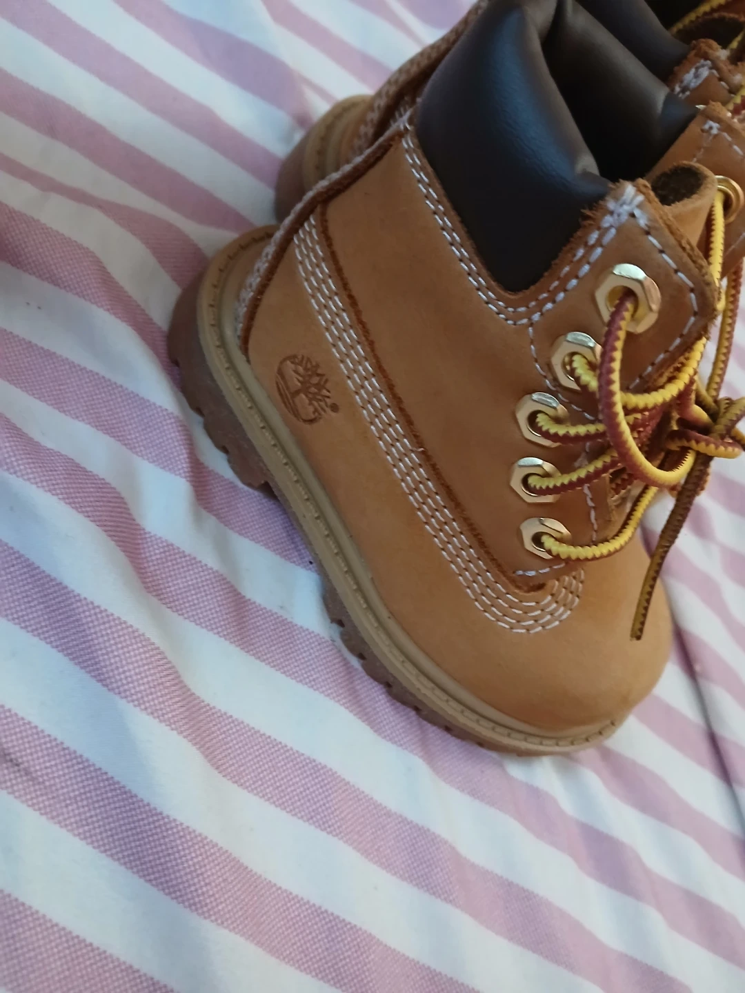 Classic tan Timberland boots for toddlers. Features durable construction and iconic lacing. Perfect for little adventurers!