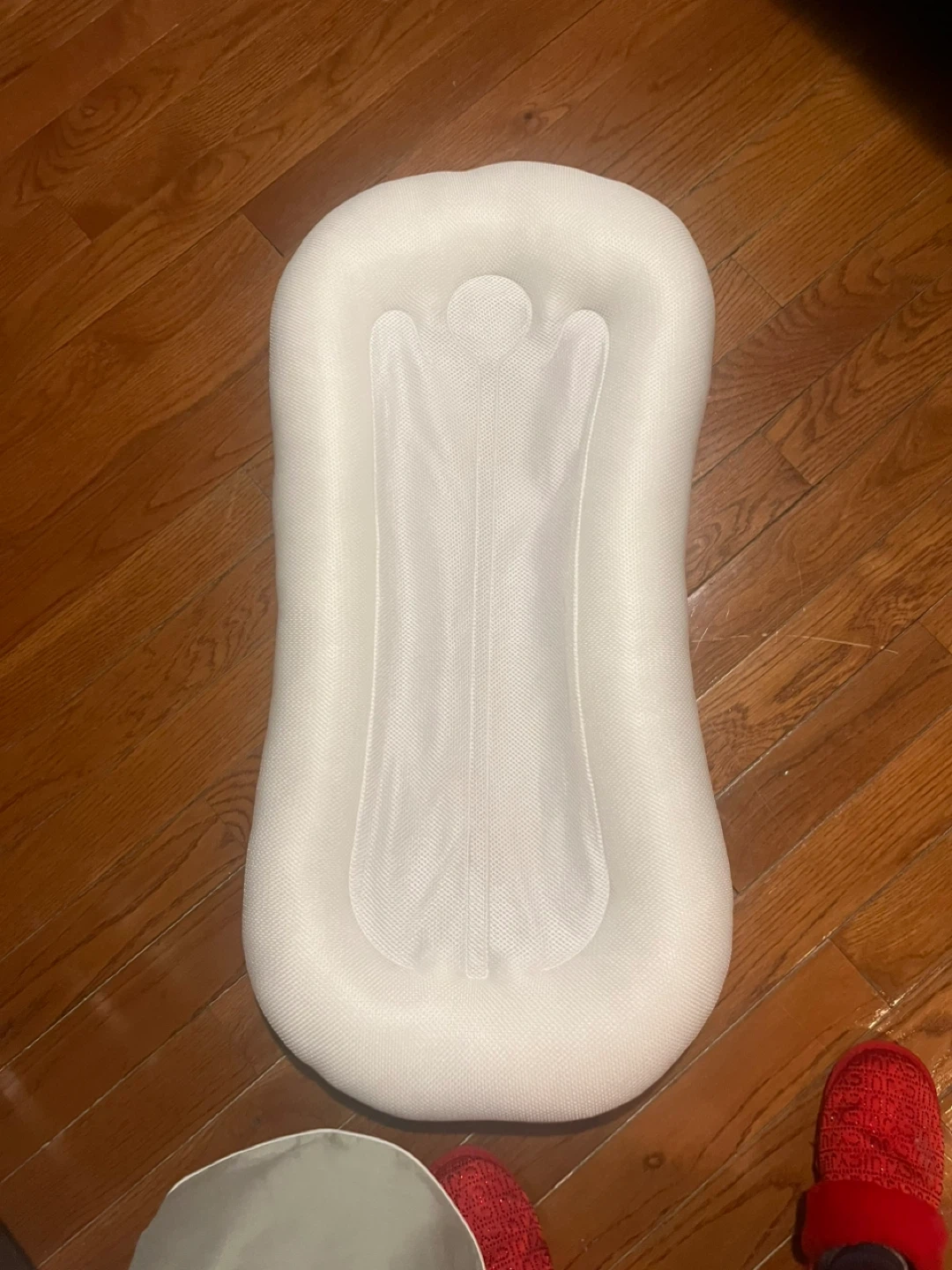 White mesh baby lounger for infants. It's designed to provide a comfortable and secure sleeping space for your little one. Breathable mesh material. Useful for supervised naps.