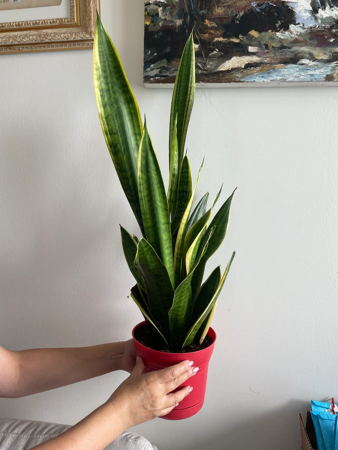 85Selling a healthy snake plant in a bright red pot! It's a great way to add some greenery to your home. Snake plants are known for being low-maintenance and air-purifying, making them perfect for any space.