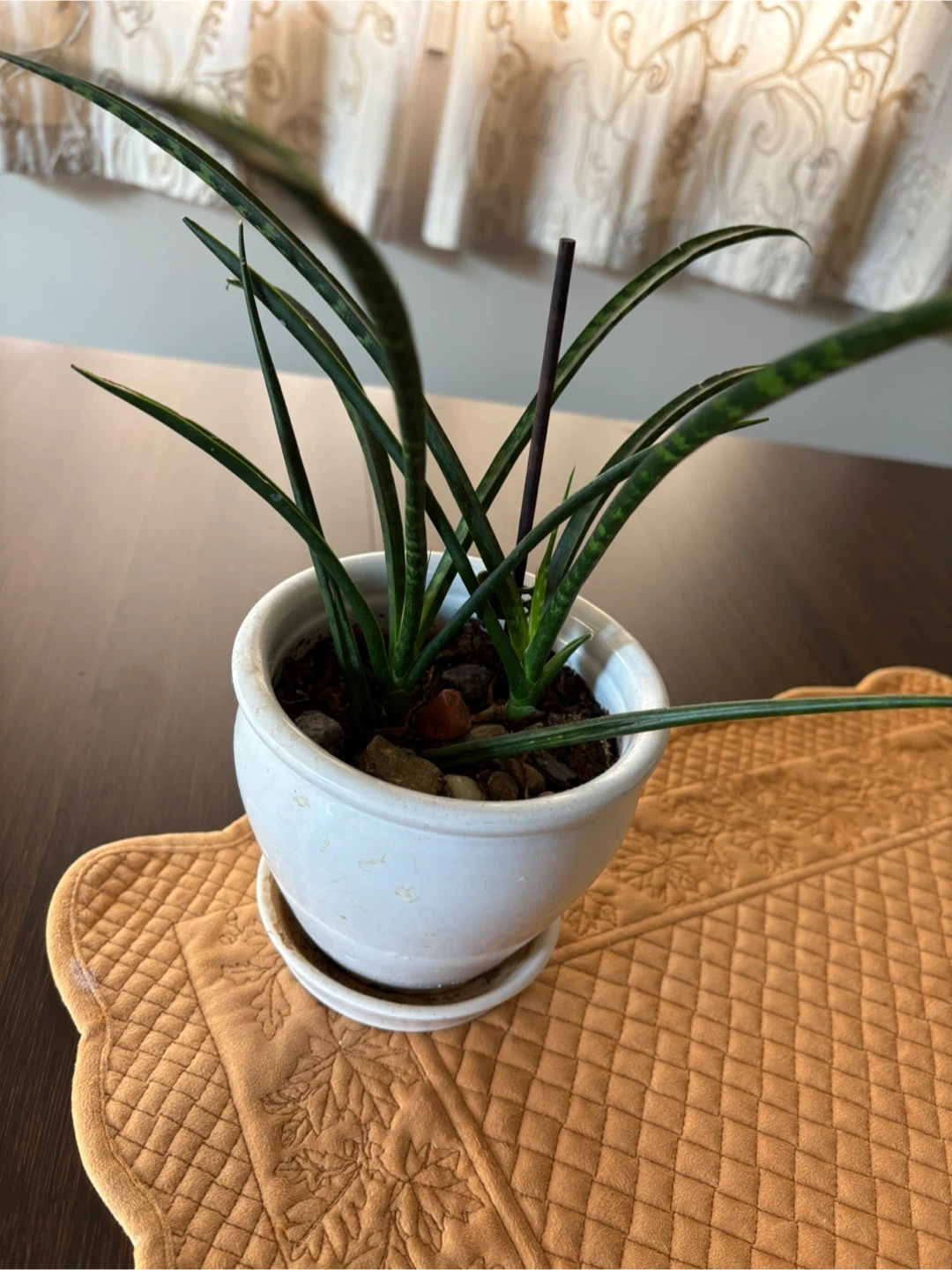 171A lovely snake plant potted in a simple white pot. It's a great addition to any home or office space and is known for being low-maintenance